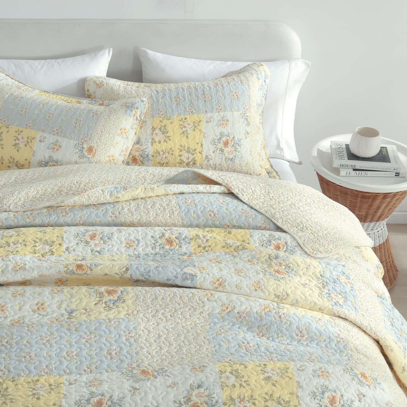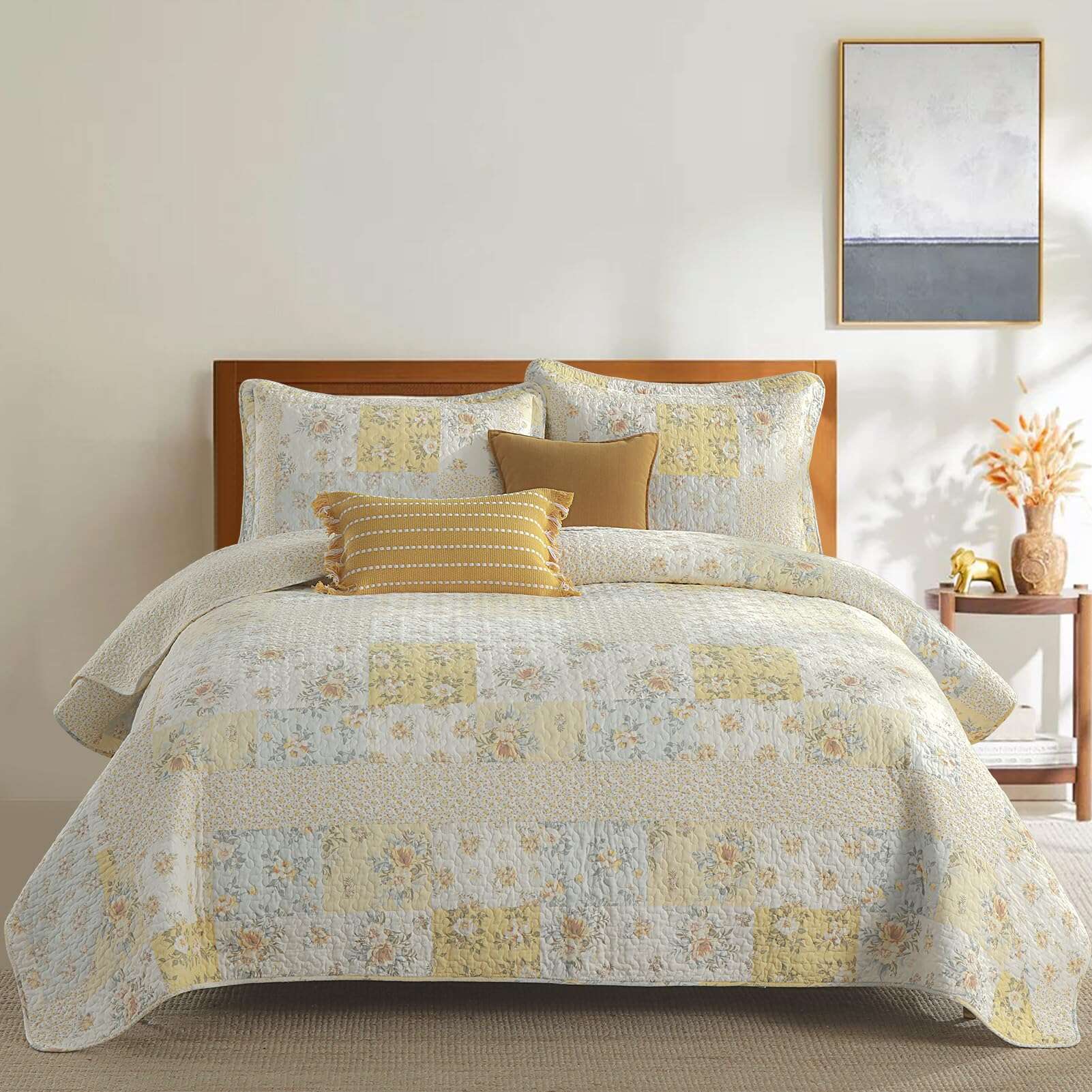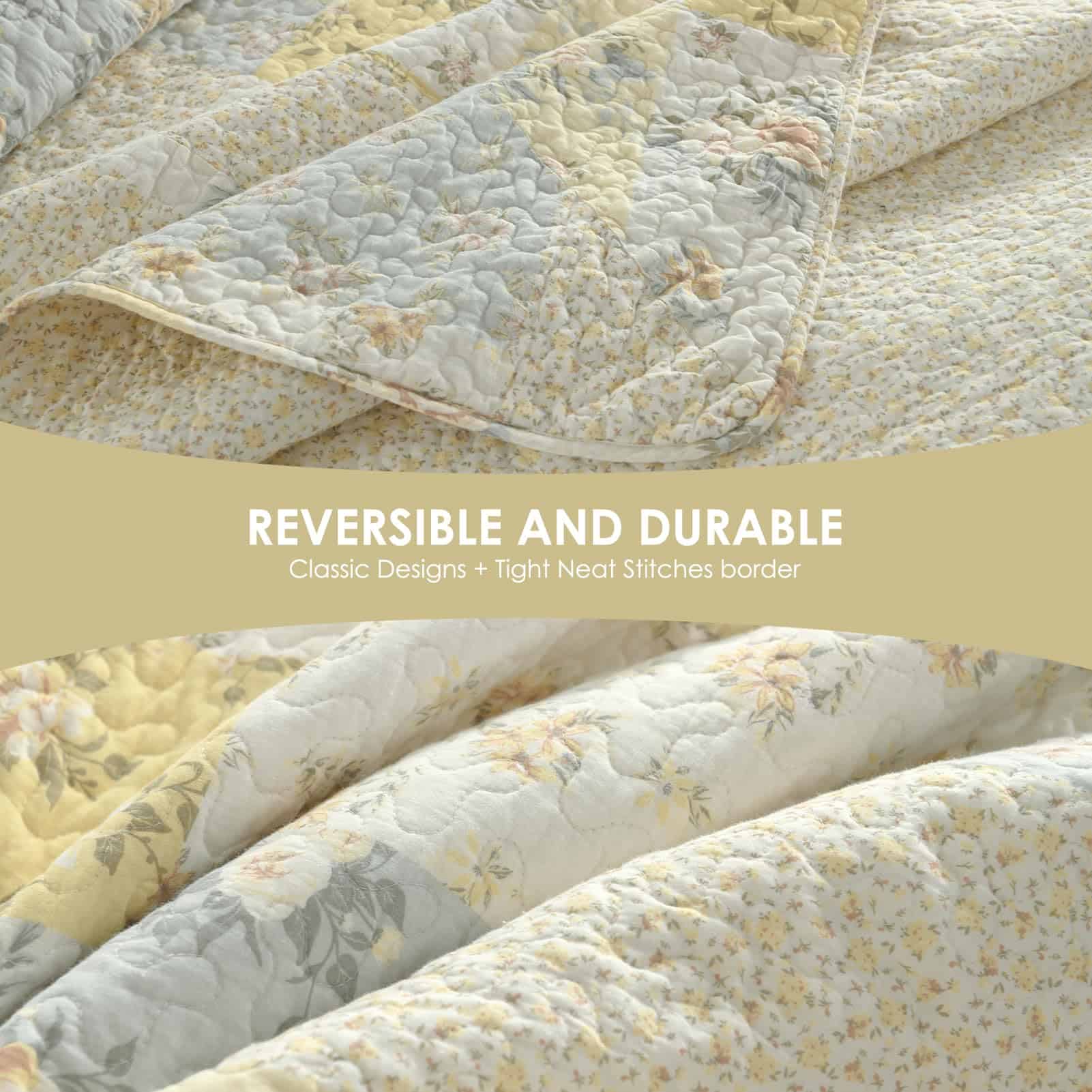 Diseño de Decoración Perfecto – Patrón amarillo de flores a cuadros con un borde hermoso que aporta un aspecto lujoso y elegante a la decoración de tu dormitorio, reversible con un patrón y color diferente en ambos lados. Es una buena elección para decorar y realzar la habitación principal o de invitados con este elegante juego de colchas.