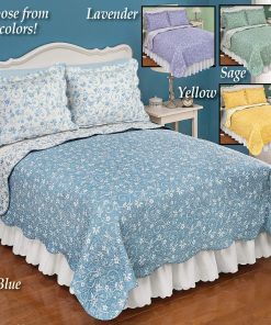 Colcha Reversible con Diseño Floral y Bordes Festoneados de