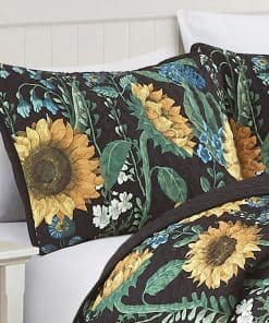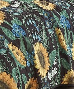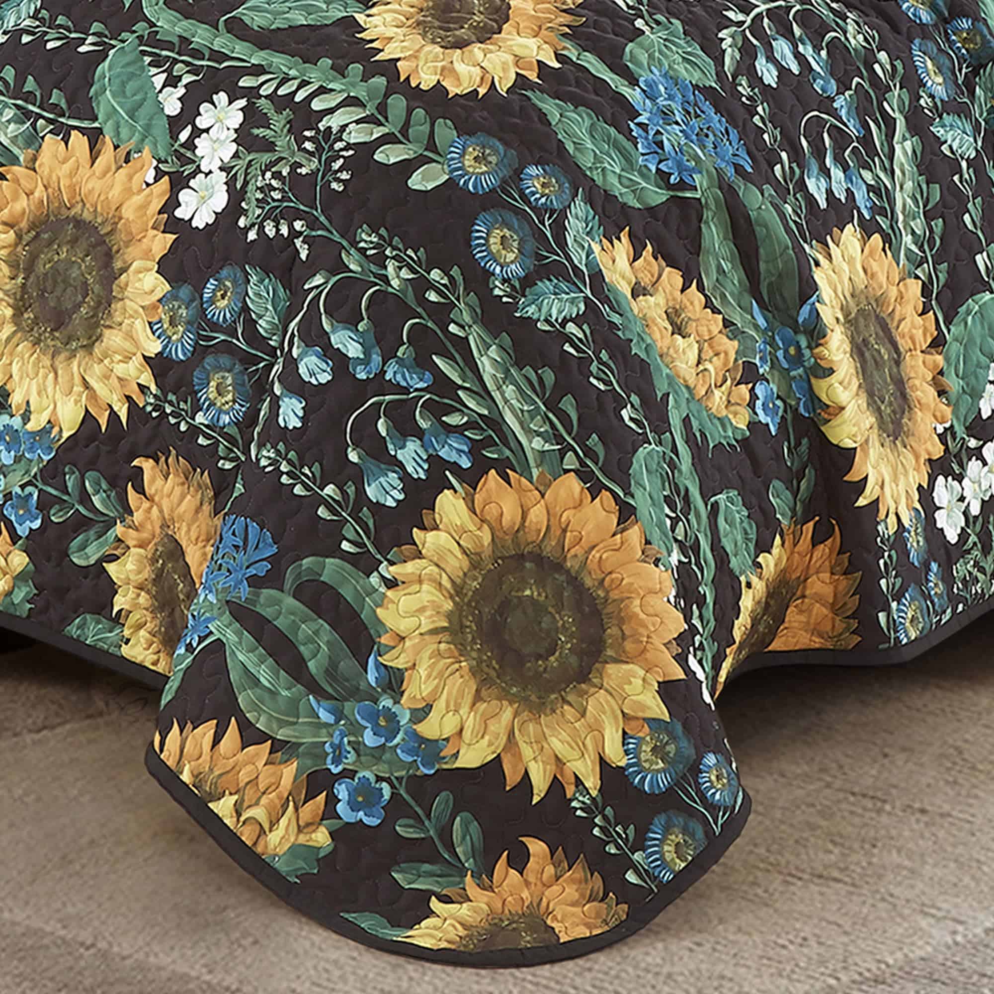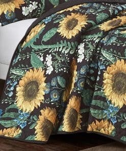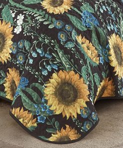 Colcha Reversible de Girasoles Amarillos, Negro y Verde de