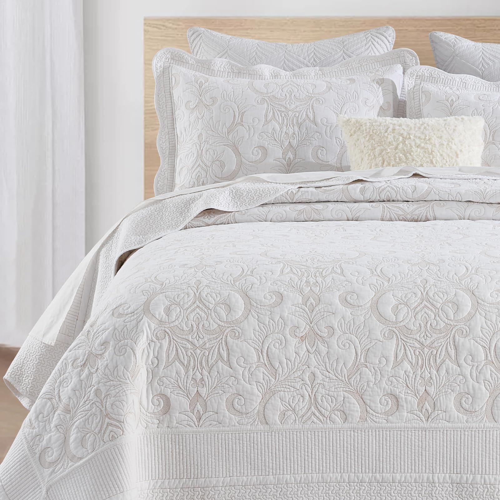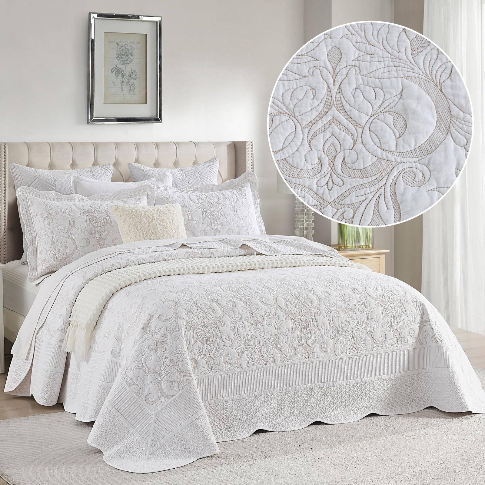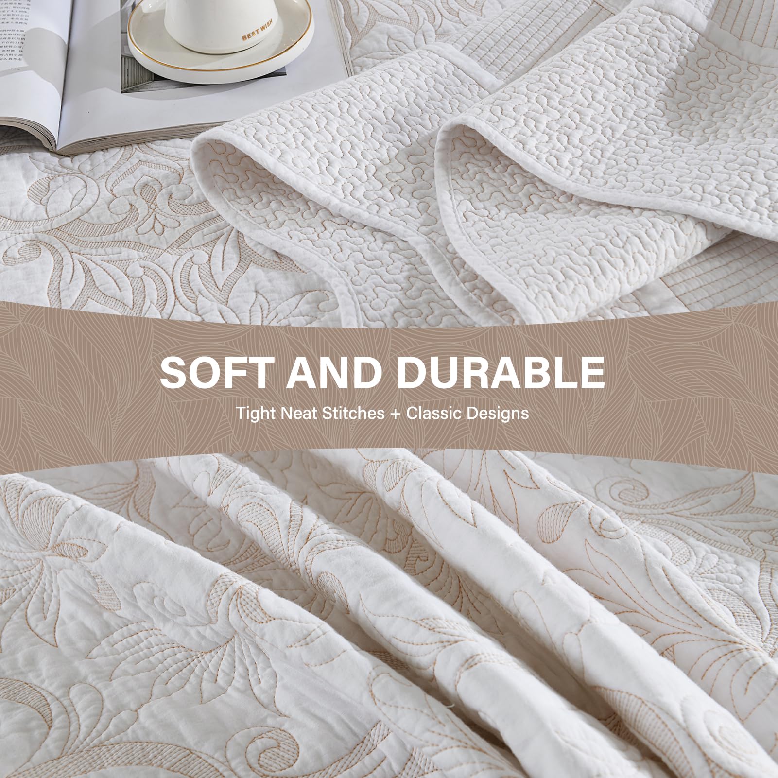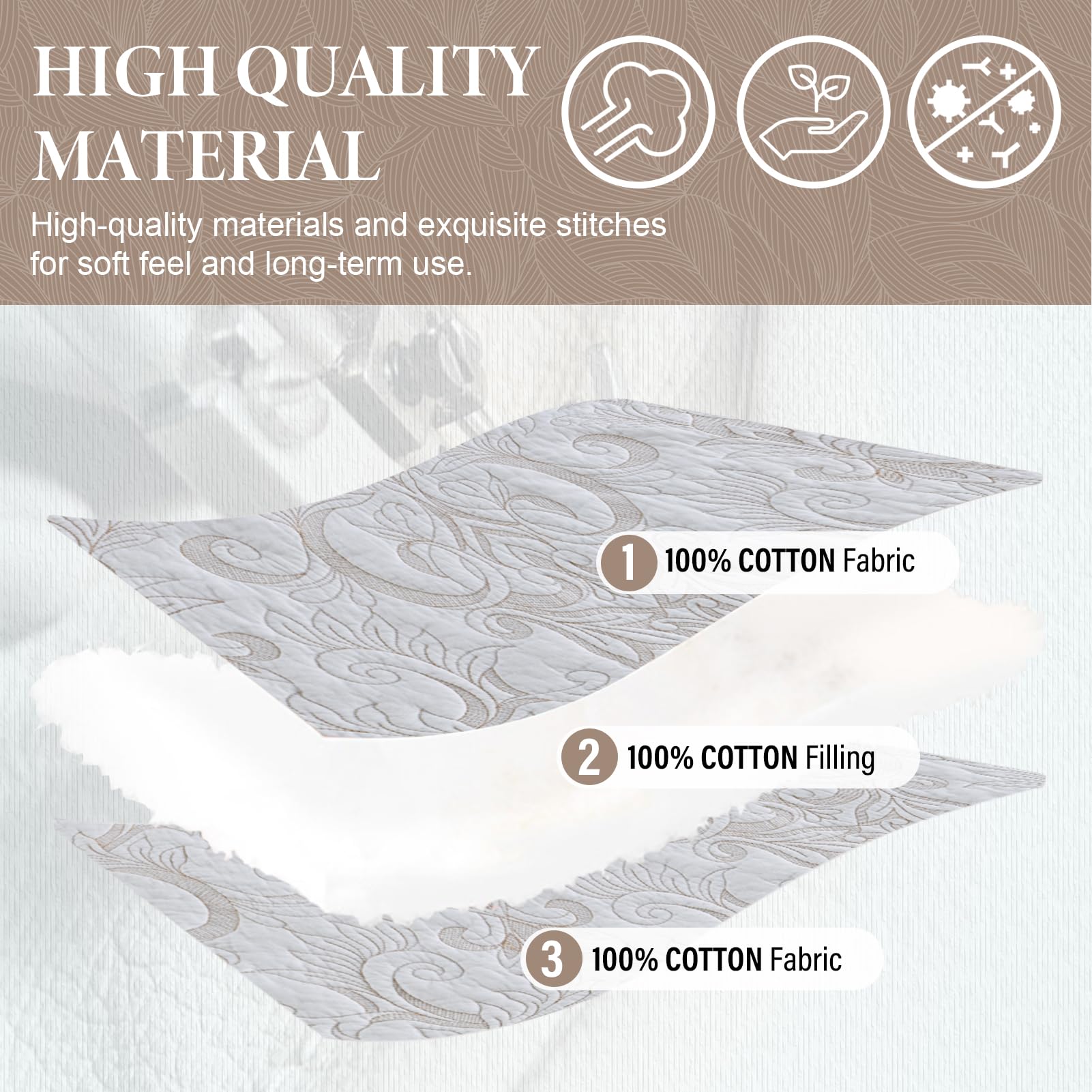 2. 100% Algodón Natural: El tejido y el relleno de esta colcha de cama (colcha, colcha extragrande) están fabricados con algodón premium al 100%, ofreciendo una suavidad, transpirabilidad y durabilidad incomparables para una experiencia de sueño lujosa. Esta colcha de cama es también una buena opción para personas propensas a alergias o que tienden a sudar durante el sueño.