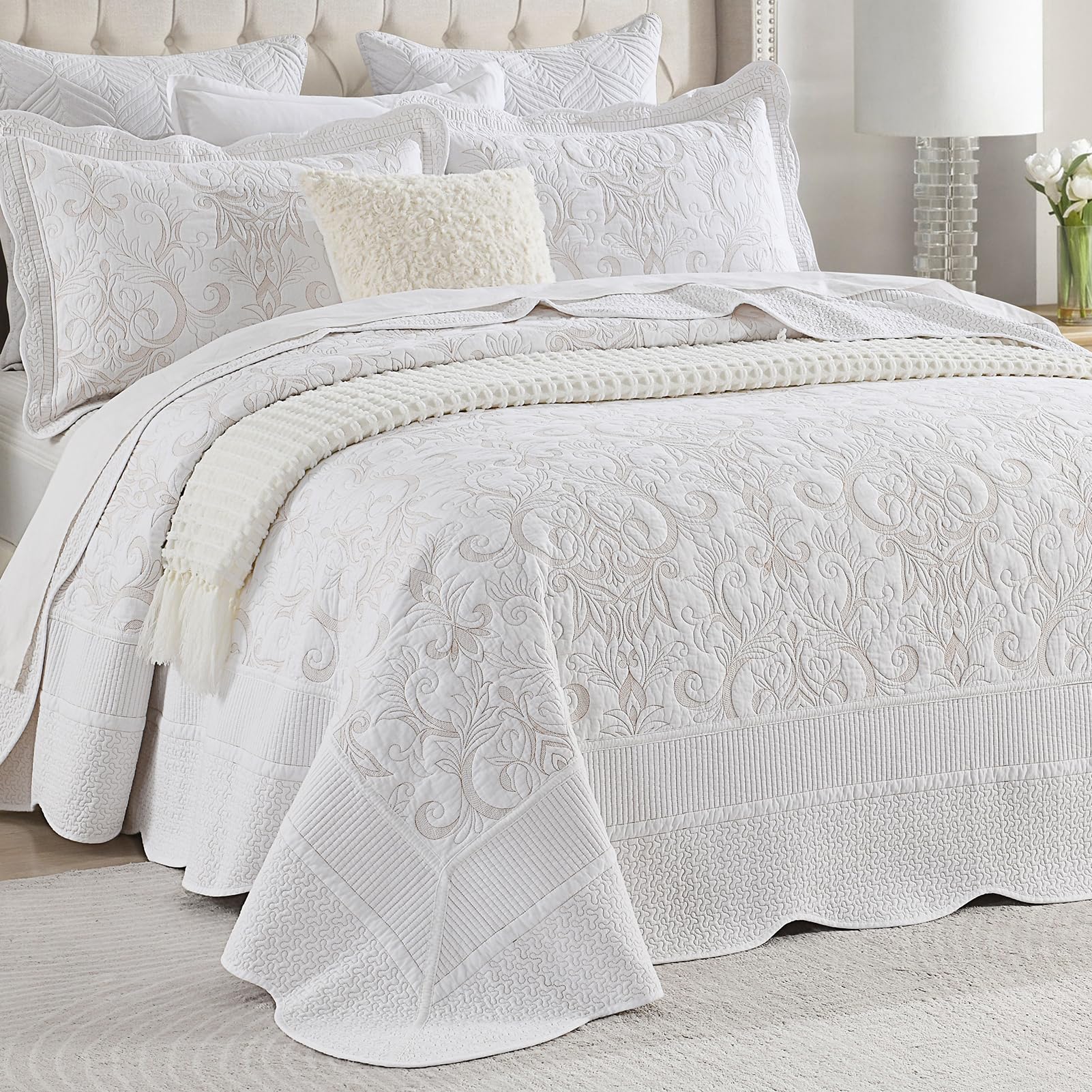 5. Juego de 3 piezas Queen Bedspread (Colcha) incluye: 1 colcha de cama: 120″ x 102″; 2 fundas de almohada: 20″ x 28″.