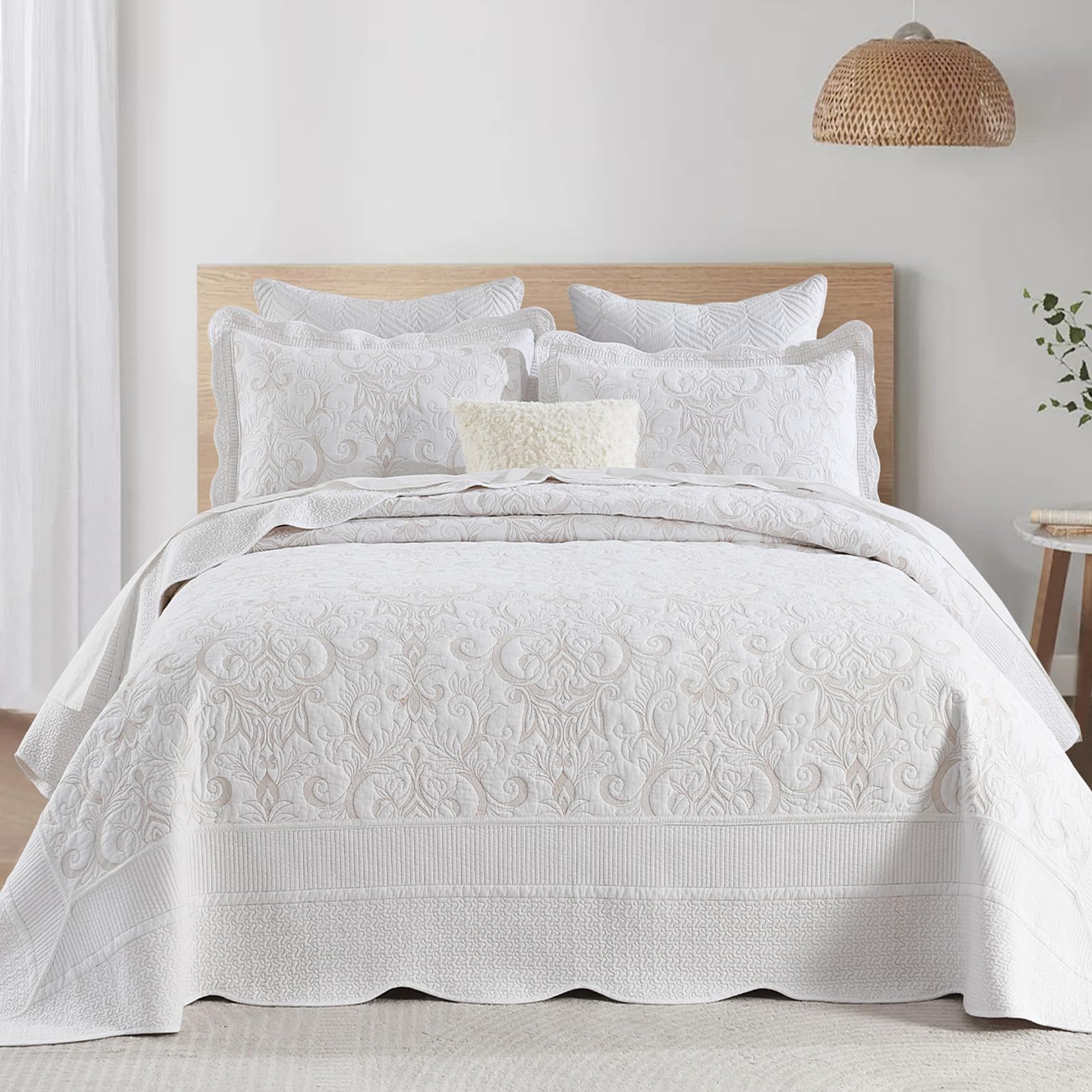 4. Versatilidad: Esta colcha de cama está diseñada para proporcionar confort durante todo el año, las puntadas limpias y apretadas aseguran un uso a largo plazo, ya sea que esté buscando una cubierta ligera en verano o una capa adicional de calidez en invierno, esta colcha de cama tiene todo lo que necesita. Su diseño multifuncional le permite ser utilizada como colcha, cubrecama, colcha de cama o incluso un edredón acogedor, proporcionando flexibilidad para adaptarse a sus necesidades.