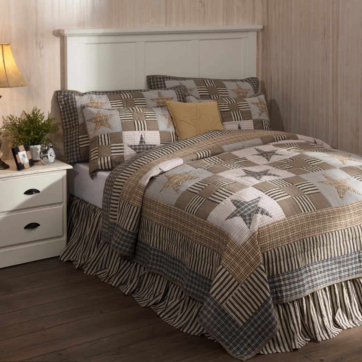 Colcha VHC Brands Ninepatch para Cama, King, Gris Cálido
