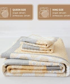 Este juego de ropa de cama incluye 1 Colcha (90″ x 98″) + 2 Fundas de Almohada (20″ x 28″). Un set completo puede simplificar el proceso de selección y mejorar el atractivo estético general y la coherencia estilística de su ropa de cama. Adecuado para cualquier estación, combina encanto rústico con diseños florales elegantes para una sensación cálida e acogedora. Mantenga la calidad de la colcha evitando blanquearla. Siga estos pasos para una frescura y belleza duraderas.
