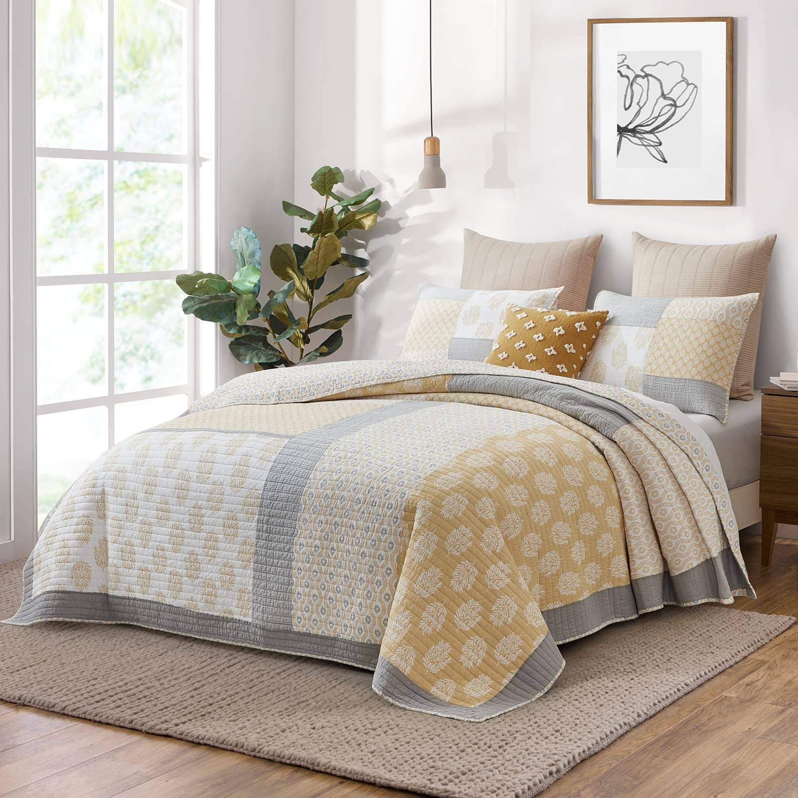 Colchas Amarillas Queen Size KALOOLA, Juego de Ropa de Cama