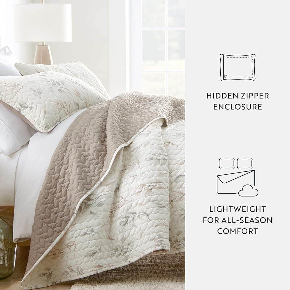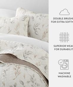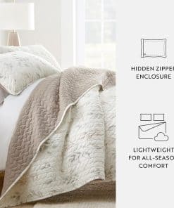 Dale a tu habitación una cómoda adición con este conjunto de colcha y funda de almohada de microfibra reversible súper suave. Lo hemos rellenado generosamente con plumón artificial, y cada pieza está doble cepillada para darle ese suave y acogedor tacto. Los hermosos y sutiles acolchados añaden dimensión y un toque magnífico a cualquier dormitorio. Hilado a partir de nuestros hilos premium, este conjunto es dos veces más resistente que el algodón, resistente a las arrugas y una opción perfecta para aquellos con alergias o piel sensible. La reversibilidad le da a cada lado su propio aspecto único. Disponible en una variedad de hermosos diseños de diseñador, lo que hace que sea fácil refrescar cualquier dormitorio.