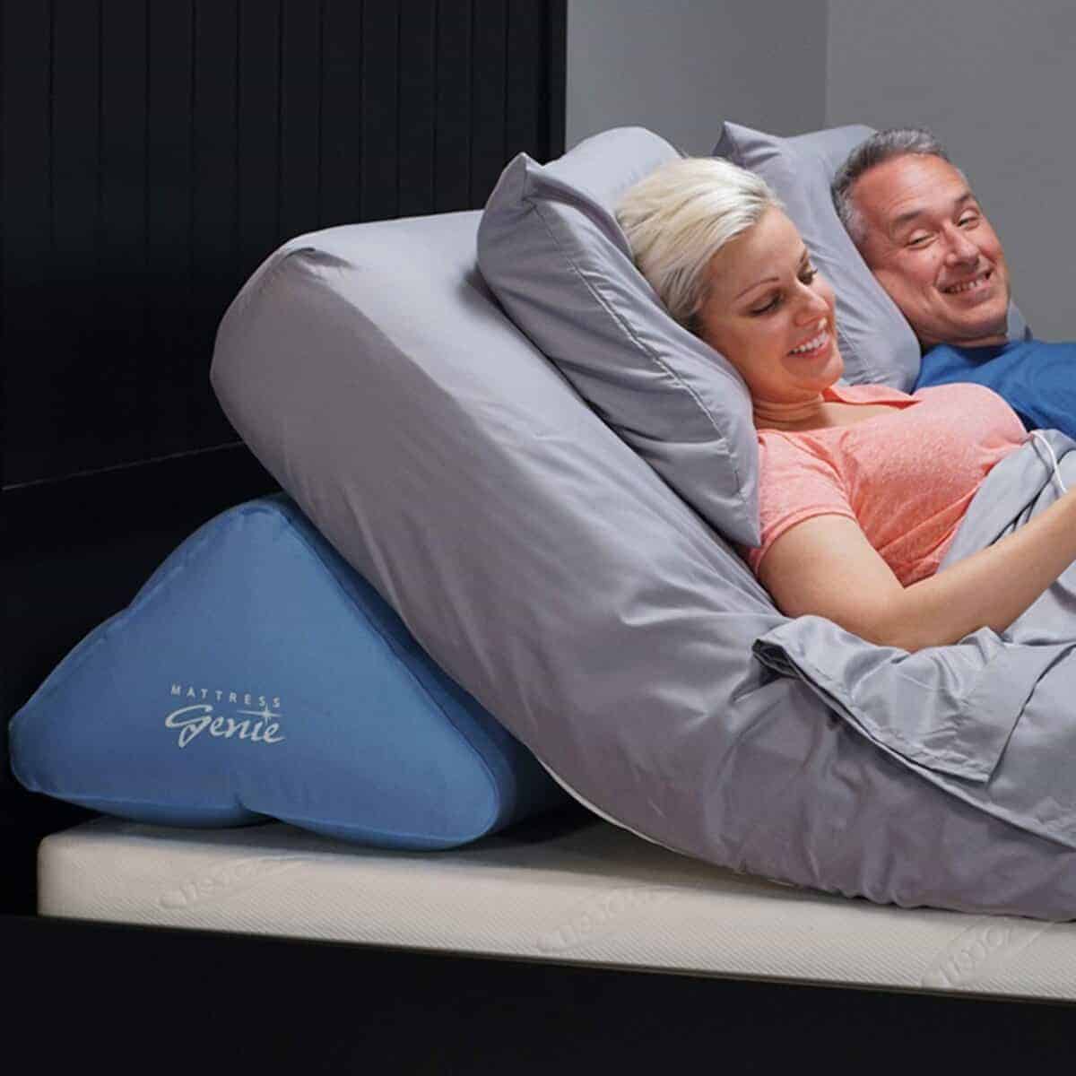 El Mattress Genie proporciona los beneficios de un marco de cama ajustable sin la necesidad de comprar una cama o colchón completamente nuevos. Puede transformar cualquier cama en una ajustable, permitiéndote elevar la cabeza y la parte superior del cuerpo para mayor comodidad, mejor sueño e incluso alivio de problemas como el reflujo ácido o la recuperación después de una cirugía. Nuestra cuña de colchón inflable puede ajustar fácilmente la altura de la cabeza de su colchón dentro de un rango versátil de 0 a 45 grados. Ya sea que necesites una elevación suave para aliviar el reflujo ácido o prefieras una ligera inclinación para una mejor respiración, nuestra cuña para dormir capacita a todo tipo de durmientes, desde los que duermen de lado, boca arriba, boca abajo, hasta los que cambian de posición para encontrar su ángulo perfecto para una buena noche de sueño. La comodidad al dormir es nuestra principal prioridad. La versatilidad de nuestra cuña de cama se adapta a las personas que necesitan una posición elevada para una respiración más fácil, ofreciendo un soporte indispensable para los postrados en cama y aquellos con discapacidades. Ideal para abordar la apnea del sueño, GERD, acidez estomacal y reflujo ácido, permite a los usuarios despertarse sintiéndose menos fatigados y renovados. Nuestra cuña de soporte para la espalda no es solo para uso nocturno. Es perfecta para siestas rápidas y rejuvenecedoras y puede llevarte fácilmente a una posición sentada cómoda, permitiéndote disfrutar de comidas, relajarte y ver televisión desde tu cama, o trabajar desde los confines acogedores de tu habitación con facilidad. También se puede utilizar como cuña para las piernas colocándola debajo de las rodillas. La cuña ajustable se puede inflar o desinflar fácilmente con un control remoto fácil de usar, lo que la hace ideal para pacientes o personas mayores que buscan independencia para ajustar la posición de su colchón sin ayuda. Además, la vejiga de la cuña se infla rápidamente en menos de un minuto, asegurando una configuración sin problemas. Elevar el pie de tu cama no solo promueve un flujo sanguíneo saludable y reduce la hinchazón en las piernas, sino que también proporciona un alivio y comodidad muy necesarios a los pies cansados y adoloridos. Además, elevar las piernas puede ser particularmente beneficioso para la recuperación después de cirugías que involucran las caderas o las piernas, ayudando a aliviar el dolor y apoyar el proceso de curación. Nuestra solución de cuña inflable es el compañero de viaje definitivo, ya que la cuña, el control remoto, la bomba y el motor ocupan un espacio mínimo en tu maleta o equipaje debido a su tamaño compacto. Ya sea en un viaje de negocios, de vacaciones, en un hotel o visitando amigos y familiares, esta cuña de colchón de viaje te permite elevar la cabeza y los hombros para una buena noche de sueño en camas desconocidas. Nuestra cuña de apoyo para la cabeza y la espalda ofrece un gran valor como una alternativa económica que te ahorra dinero en comparación con los gastos asociados con comprar o alquilar camas de hospital. Nuestra cuña de respaldo te permite disfrutar de los beneficios de la elevación ajustable de la cabeza, una mayor comodidad y ventajas para la salud sin dañar tu bolsillo, asegurando que tanto tu bienestar como tu cartera se mantengan en buena forma.