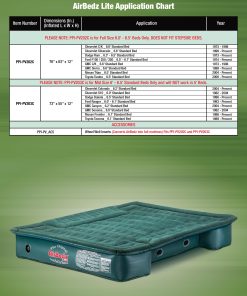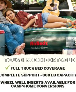 Los Colchones AirBedz Lite están diseñados para adaptarse alrededor y sobre los pasos de rueda de tu camioneta creando un área para dormir que utiliza toda la cama del camión, proporcionando más espacio y comodidad para los entusiastas del aire libre. La construcción de PVC de mayor calidad garantiza un colchón más resistente a los pinchazos que cumple con las necesidades extremas de los hombres de campo donde jugar duro y dormir bien son lo único que importa. Los insertos inflables opcionales para pasos de rueda transforman AirBedz en un colchón de aire estándar ideal tanto para uso doméstico como en tiendas de campaña.