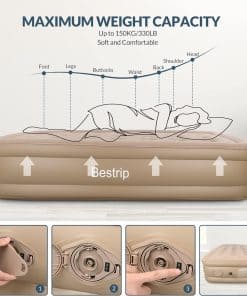 El colchón de aire Bestrip Twin con bomba incorporada es la opción ideal para cualquier situación, ya sea para tener invitados en casa, acampar en la naturaleza o simplemente para relajarse en el jardín. Con un diseño ergonómico que permite ajustar el nivel de inflado según tus necesidades de sueño, este colchón inflable ofrece comodidad y versatilidad. Además, su bomba de aire recargable y desmontable te permite usarla para otros productos inflables, como anillos de natación o sofás inflables. Con una parte superior suave y acolchada y una base antideslizante, el colchón Bestrip garantiza un descanso confortable durante toda la noche. Su tamaño compacto y su peso ligero lo hacen fácil de transportar y almacenar, siendo el compañero perfecto para excursiones de camping o viajes a la playa. No te preocupes por posibles pinchazos, ya que el producto incluye un parche de reparación para solucionar rápidamente cualquier fuga de aire. ¡Disfruta de un sueño reparador en cualquier lugar con el colchón de aire Bestrip Twin!