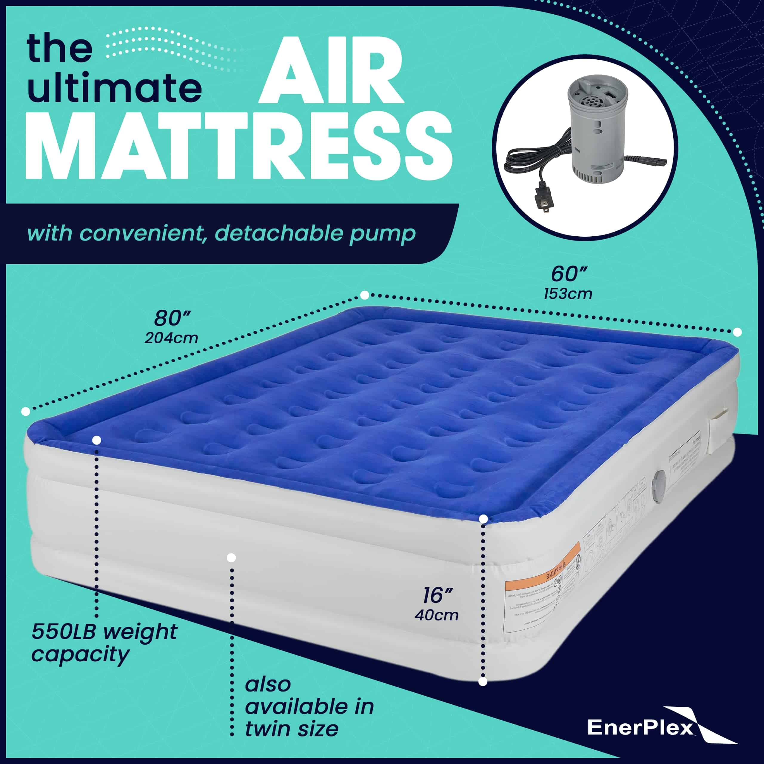 Colchón de Aire EnerPlex Queen con Bomba – Doble Altura,