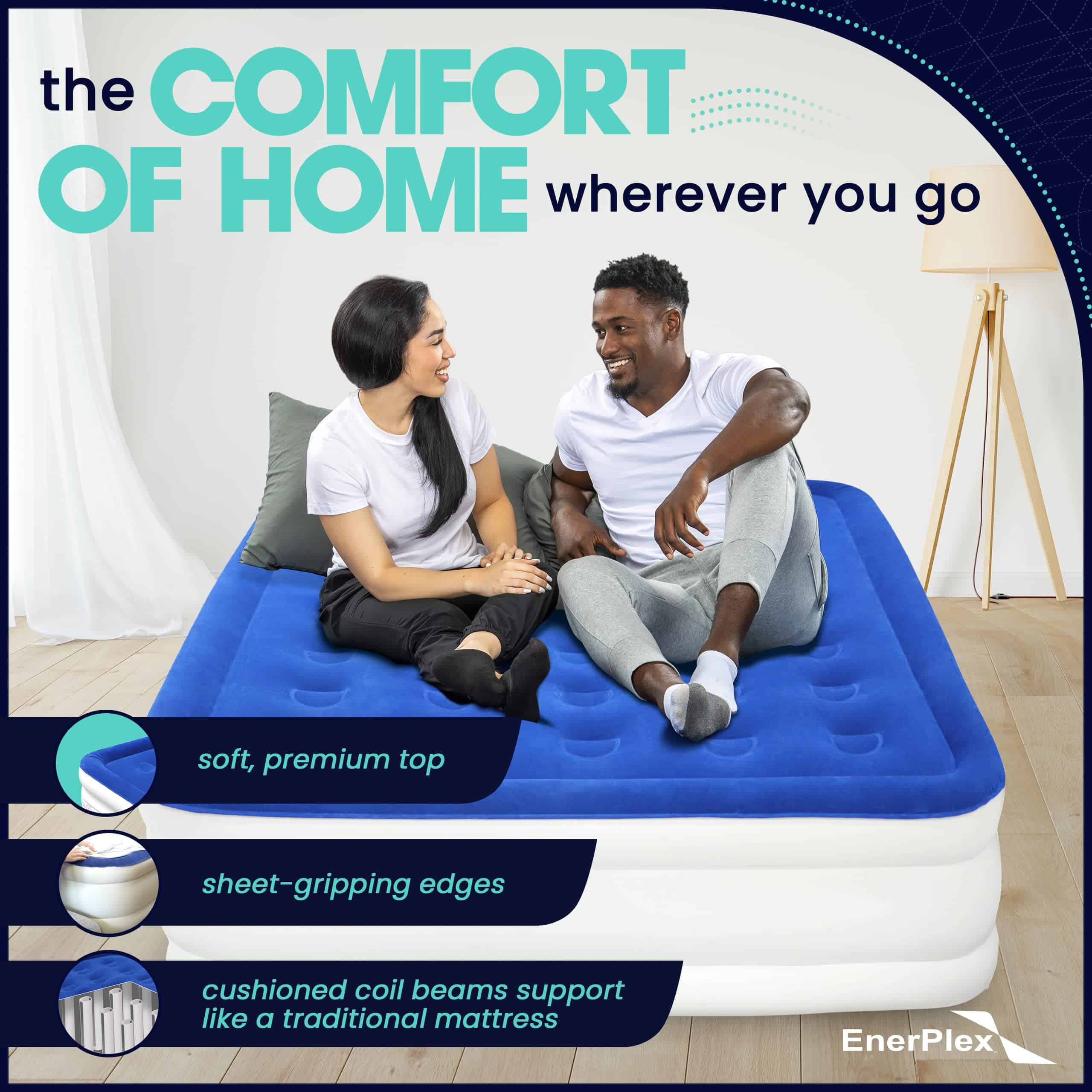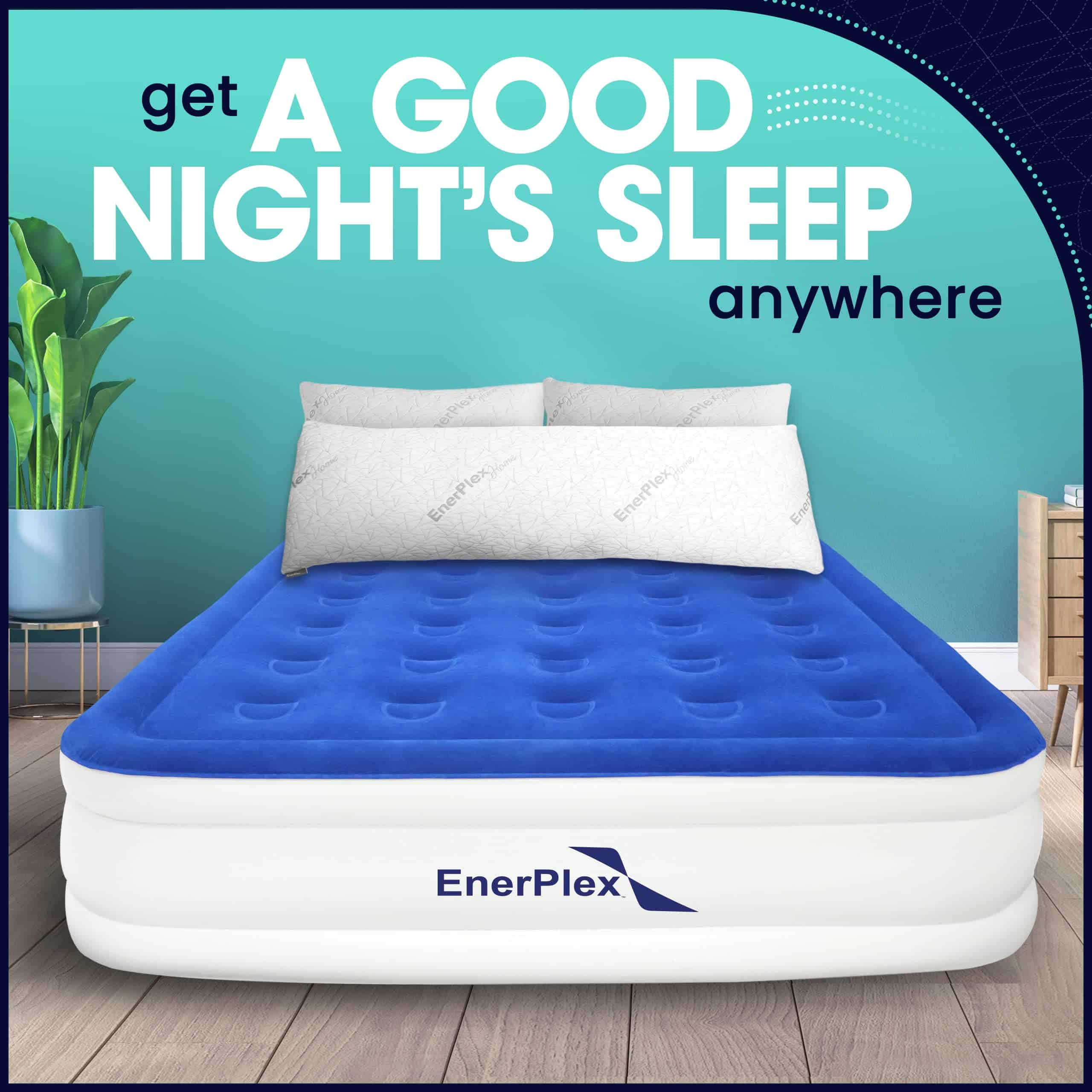 Colchón de Aire EnerPlex Twin con Bomba – Doble Altura, Portátil, Colchón Inflable con Bomba Eléctrica Desmontable para Camping y Hogar – Cama de Aire Fácil de Inflar con Salida de Desinflado – Azul