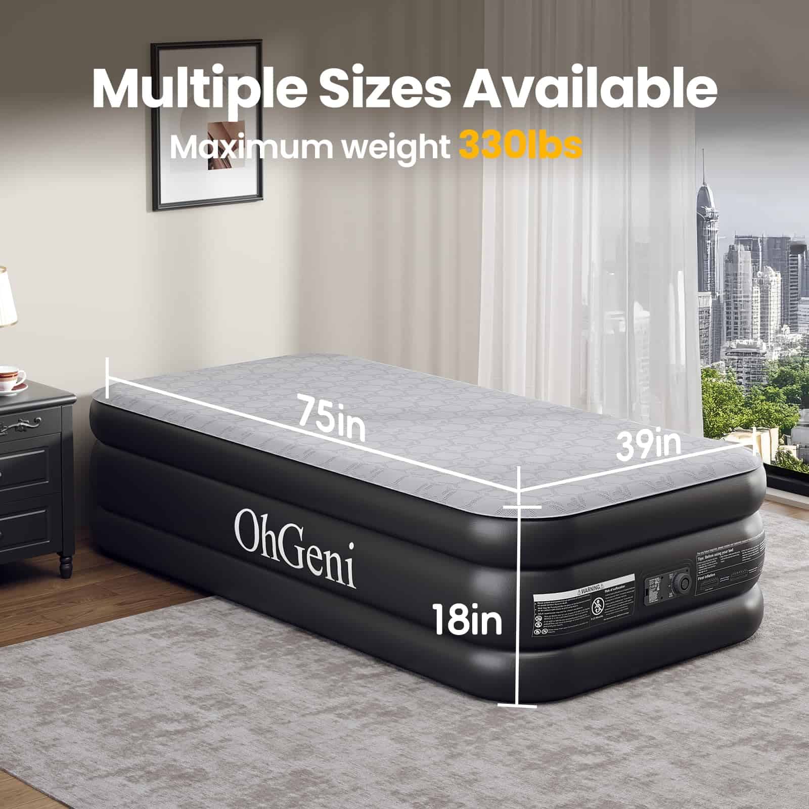 Colchón de Aire Gemelo OhGeni con Bomba Incorporada, Cama