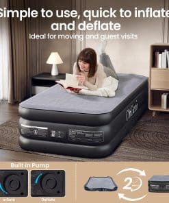2. Inflado sin Esfuerzo con Bomba Incorporada: Disfruta de una configuración conveniente con la bomba eléctrica integrada, que permite una rápida auto-inflación y desinflado. Personaliza tu comodidad con solo tocar un botón, asegurando ajustes sin problemas y total relajación.