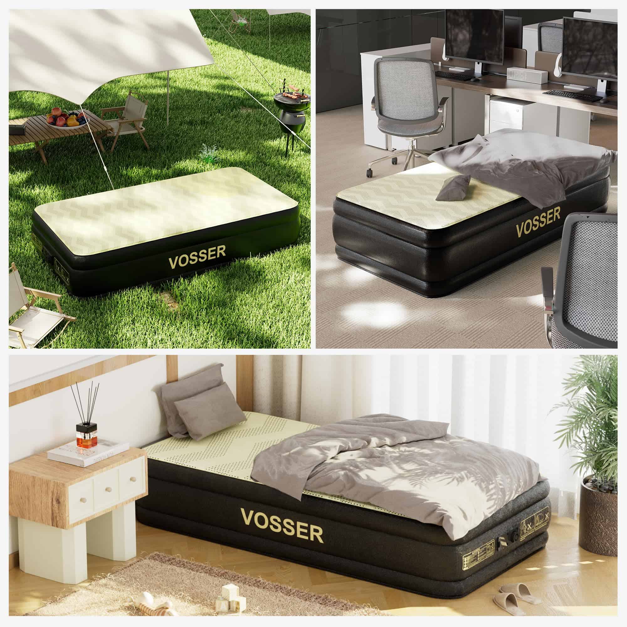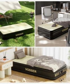 6. Calidad sin Preocupaciones: Como marca de confianza, VOSSER garantiza calidad y satisfacción con nuestro colchón de aire, ofrece una garantía de 2 años sin riesgos para todos sus colchones hinchables. Por favor, contáctenos para cualquier problema y responderemos rápidamente dentro de las 24 horas