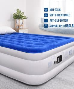 El colchón de aire Meldoz Queen con bomba incorporada es la opción perfecta para tener una cama cómoda y conveniente en casa, en acampadas o para visitas inesperadas. Con un sistema de doble bomba que incluye 40 bobinas de soporte y una capacidad de carga de 660 lb., este colchón inflable garantiza un fuerte soporte para la columna sin tambalearse. El inflado rápido en tan solo 3 minutos hace que sea muy fácil de usar en cualquier momento. Además, la resistencia al agua y a los pinchazos gracias a su doble altura y tres capas de material de PVC de alta calidad aseguran durabilidad y comodidad. Con una altura de 20 pulgadas, este colchón de tamaño Queen ofrece mucho espacio para dormir, perfecto para uso temporal o como cama de invitados. Incluye una bolsa de transporte de nylon grande para facilitar el almacenamiento y transporte, así como dos parches de reparación de TPU para un mantenimiento diario sin problemas. Con la garantía de servicio al cliente de 18 meses de Meldoz, puedes estar seguro de tener un producto de calidad respaldado por un equipo amigable siempre dispuesto a ayudar.
