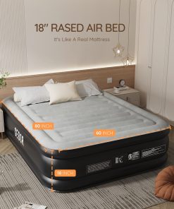 Colchón de Aire Queen de Lujo Sebor con Bomba Incorporada, Colchón Inflable Duradero para Hogar e Invitados, Colchón Hinchable de 18 pulgadas, 660lb MAX (Negro Gris) – ¡Es como una cama real! El colchón de aire Sebor utiliza la innovadora estructura en forma de U patentada, garantiza el sólido soporte del colchón de aire. La parte superior de piel premiun proporciona un toque lujoso en la cama, proporcionando una experiencia de descanso confortable. A diferencia de las marcas promedio, el colchón de aire Queen Sebor utiliza un material más grueso, es +30% más grueso que los productos promedio de otras marcas, además de un diseño único de flujo de aire, lo que hace que nuestro colchón sea uno de los más resistentes y a prueba de fugas. La parte inferior antideslizante hace que la cama sea muy estable, sin importar cuánto se mueva o gire, la cama se mantiene quieta y en silencio. La bomba incorporada y el diseño de almacenamiento del cable hacen que nuestra cama sea muy fácil de montar, solo tarda 4-5 minutos en configurar el colchón de aire. La bomba certificada por ETL te permite usarla de forma segura, con un ajuste automático inteligente que detiene el bombeo de aire cuando la presión de aire es suficiente. La bolsa de nylon de alta calidad y duradera te permite empacarla para guardarla o viajar de forma conveniente. El colchón de aire Queen Sebor está hecho con el tamaño adecuado de la cama Queen. A diferencia de los productos de otras marcas, el colchón de aire Queen Sebor es realmente largo y ancho, lo que puede adaptarse perfectamente a tu sábana o cubrecamas. Gracias al diseño de la cama y al tamaño real, la cama puede soportar un máximo de 660 lb / 300 kg, permitiendo que 2 adultos duerman cómodamente. El equipo de Sebor se enorgullece y confía en el diseño del producto y en el nivel de calidad. Para todos los colchones de aire Sebor, ofrecemos una garantía de 18 meses. Si tienes alguna pregunta o problema con nuestro producto, no dudes en contactarnos y responderemos en 24 horas, para garantizar tu maravillosa experiencia de compra.