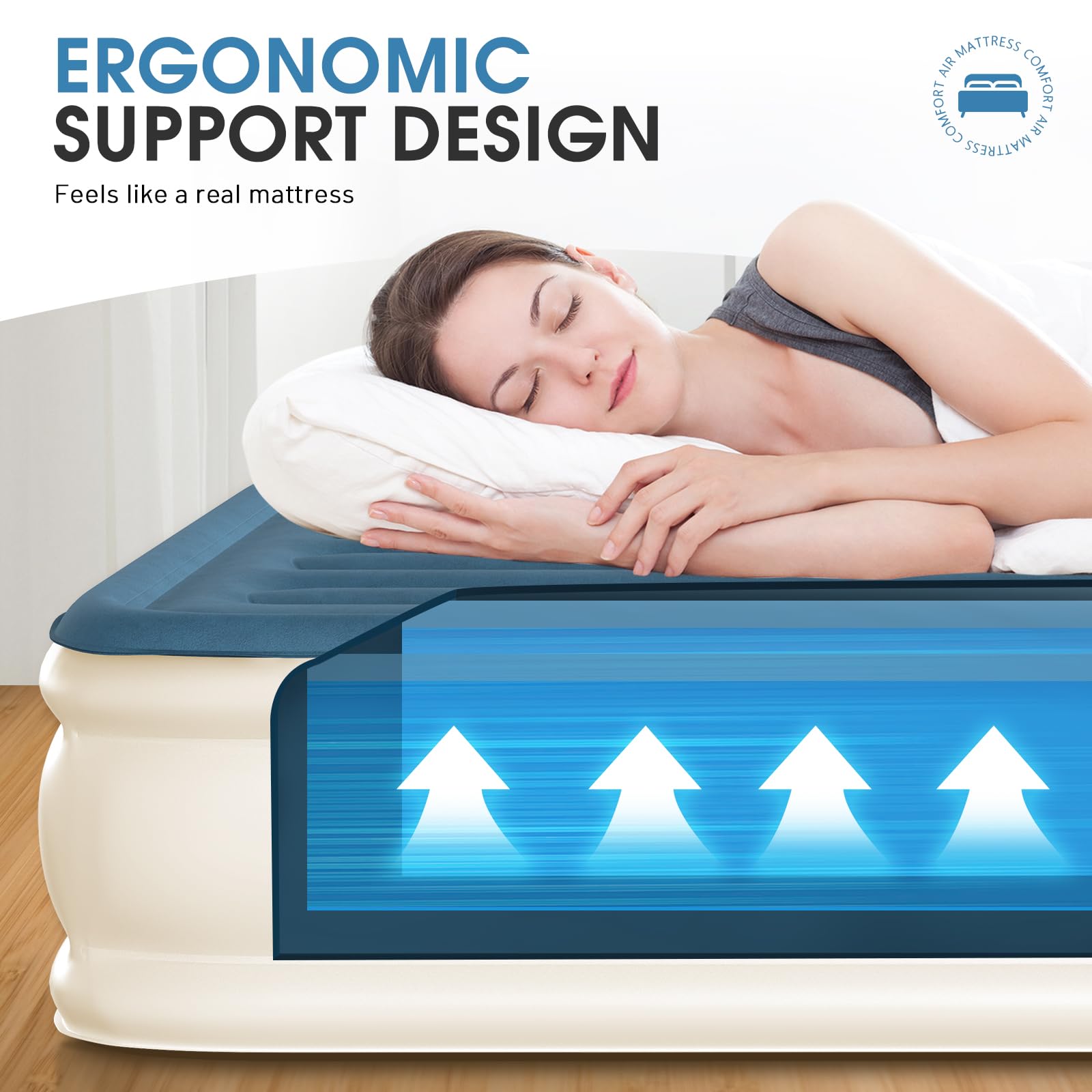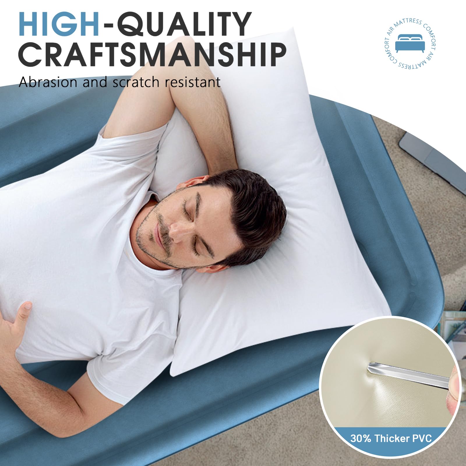 La parte superior flocada de lujo proporciona una sensación suave y mullida, ideal para relajarse después de un largo día. Este colchón de aire es versátil y se puede utilizar en una variedad de situaciones, ya sea mientras te mudas, recibes invitados o acampas en la naturaleza. Además, su fácil inflado y desinflado en solo 3 minutos lo convierten en una opción conveniente para aprovechar al máximo tu tiempo.