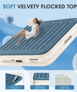 El colchón de aire tamaño King de DIVON es la solución perfecta para obtener un sueño reparador en cualquier lugar. Con su fabricación duradera y a prueba de fugas, este colchón de aire es ideal para uso en interiores o exteriores. La tecnología de soporte innovadora garantiza una máxima estabilidad y confort durante la noche, distribuyendo el peso de manera uniforme y reduciendo los puntos de presión. La parte superior de felpa de lujo proporciona un toque suave y cómodo para una experiencia de sueño inigualable. Su diseño versátil lo hace perfecto para cualquier ocasión, ya sea mudándote, acampando o alojando invitados. El colchón de aire King de DIVON es fácil de inflar y desinflar en solo minutos gracias a su bomba incorporada, lo que facilita su instalación y almacenamiento. Además, su diseño plegable y su bolsa de transporte incluida lo hacen perfecto para llevarlo a donde quieras. No dudes en contactarnos si tienes algún problema, estamos comprometidos a brindar un excelente servicio postventa para tu tranquilidad.
