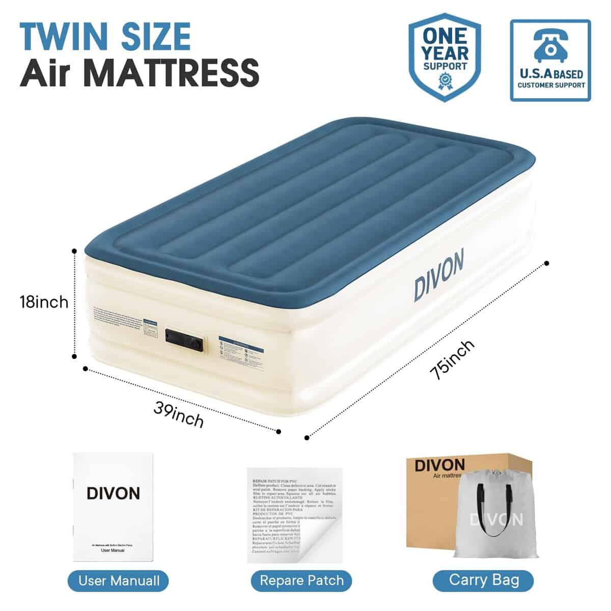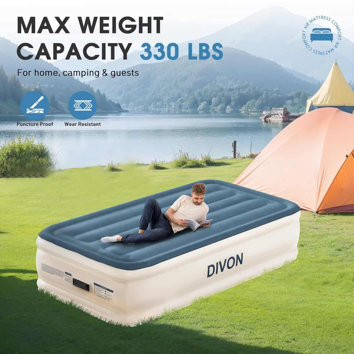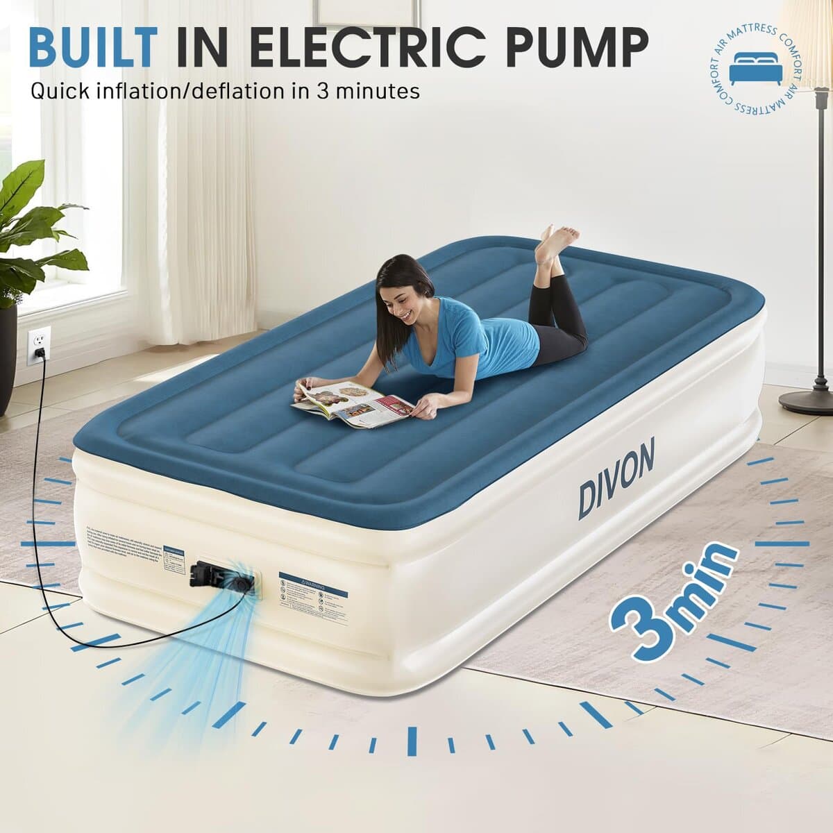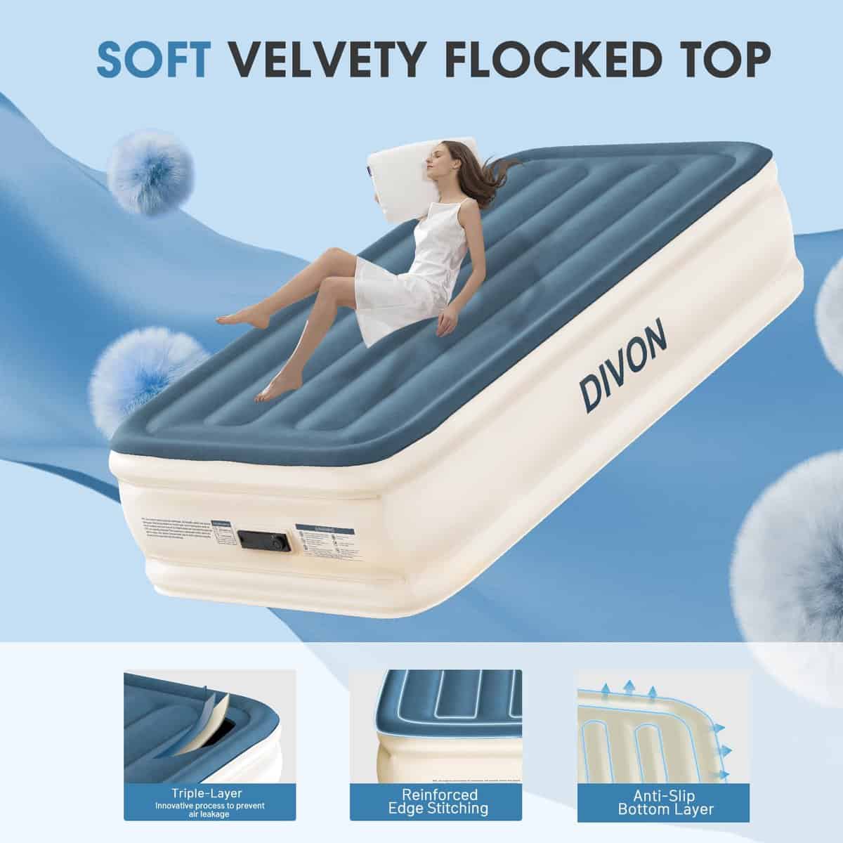 Colchón de Aire Twin DIVON con Bomba Incorporada Elevado,