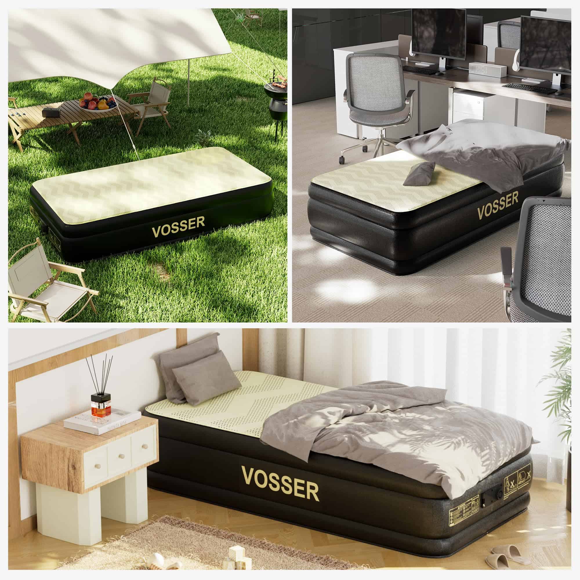 6. Calidad sin Preocupaciones: Como marca de confianza, VOSSER garantiza calidad y satisfacción con nuestro colchón de aire, ofrece una garantía de fabricante sin riesgos de 2 años para todas sus camas inflables. Por favor, contáctanos para cualquier problema y responderemos rápidamente en un plazo de 24 horas.