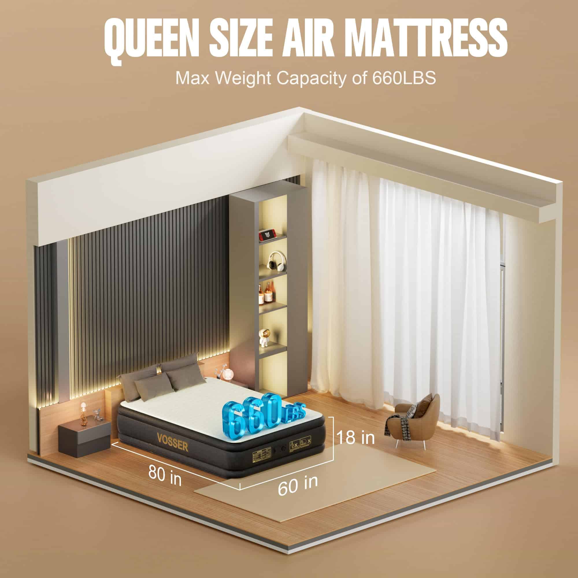 Colchón de Aire VOSSER Queen con Bomba Incorporada, Colchón