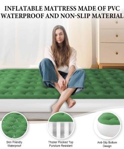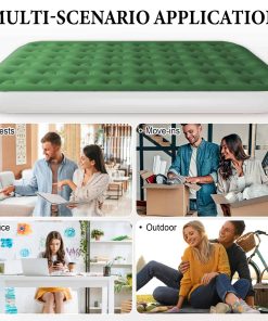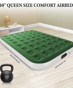 Sistema de soporte doble de lujo y único que ofrece una comodidad incomparable. Con espacio para dos adultos, la parte superior flocada es suave al tacto y resistente a perforaciones y abrasiones para una noche de sueño cómoda. Por favor, colóquelo en un lugar ventilado y seco al guardarlo para prevenir que la superficie de flocado se humedezca. Con una capacidad máxima de peso de 350 libras y disponible en tamaño queen, este colchón inflable está construido con PVC, que es resistente al agua y a la humedad, y ofrece una excelente resistencia a la abrasión y compresión para asegurar que no se deforme con el uso prolongado. Utiliza un modelo enchufable con una bomba incorporada que comienza a inflar automáticamente al enchufarla. La bomba incorporada está configurada con una fuente de alimentación de 120 VAC, 60 Hz y 1.2 A, permitiendo una inflación y deflación rápida y fácil en menos de 3 minutos, proporcionando así una experiencia de sueño confortable. Las camas inflables son un gran producto para los hogares para proporcionar acomodación temporal a los invitados y son fáciles de almacenar sin ocupar espacio. Ideal para vacaciones en la playa, campamentos en las montañas, reuniones familiares o como colchoneta de juego para niños, cubre una amplia gama de sus necesidades. ¡Si tiene alguna pregunta, contáctenos lo antes posible! ¡Haremos nuestro mejor esfuerzo para responder y resolver sus problemas! ¡Gracias por su visita y comprensión! A menudo, después de las primeras inflaciones, el material del colchón de aire se expandirá y estirará de forma natural y parecerá que está perdiendo aire, esto es normal. Simplemente vuelva a inflar la cama durante un período de tiempo y la cama volverá a su forma original! ¡Si tiene alguna pregunta, por favor contáctenos lo antes posible en el primer momento, haremos nuestro mejor esfuerzo para responder y resolver sus problemas! La primera vez que utilice este producto y luego dos horas después de llenarlo de aire, necesitará inflarlo nuevamente para asegurar una mejor estabilidad y uso más cómodo. Además, al limpiar, evite usar productos corrosivos para que su colchón inflable sea más duradero.