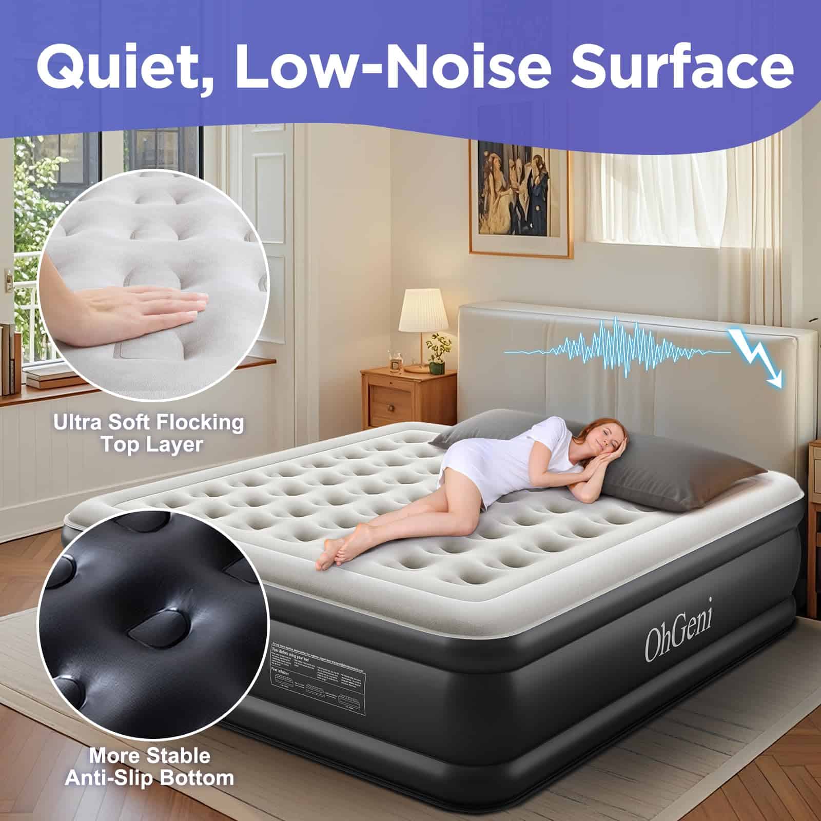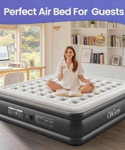 El colchón inflable OhGeni King ofrece una experiencia de descanso inigualable con su diseño cuidadosamente pensado de 18 pulgadas de profundidad y sus amplias dimensiones de 80″L x 76″W x 18″H. Equipado con una bomba de aire eléctrica incorporada de 110V, esta cama inflable garantiza una configuración rápida y sin esfuerzo y soporte de cuerpo completo. Su avanzado sistema de soporte de bobina de aire distribuye uniformemente el peso de la cabeza a los pies, brindando máxima relajación para adultos y durabilidad confiable para toda la familia. Construido con materiales premium de alta calidad, el colchón de aire OhGeni está diseñado para resistir las demandas del uso frecuente. La estructura personalizada de bobina de aire, combinada con costuras reforzadas, garantiza un rendimiento duradero sin la preocupación por el hundimiento o la deflación durante la noche. La práctica bomba integrada infla el colchón en solo 3-4 minutos con el simple cambio de un interruptor, ahorrándote tiempo y esfuerzo. Su diseño práctico se complementa con una bolsa de almacenamiento fácil de transportar, lo que lo hace fácil de manejar y guardar cuando no está en uso. Ajusta la experiencia de dormir a tu gusto ajustando el nivel de inflación para lograr la firmeza deseada, garantizando un sueño reparador y personalizado. El colchón de aire OhGeni viene con un servicio postventa del fabricante de 2 años, brindándote tranquilidad. Apoyado por un equipo de atención al cliente receptivo y confiable, la asistencia siempre está disponible para cualquier consulta o inquietud. Ya sea para uso diario o para hospedar invitados, el colchón inflable OhGeni King combina comodidad superior, durabilidad y conveniencia, lo que lo convierte en una elección versátil para cualquier entorno.