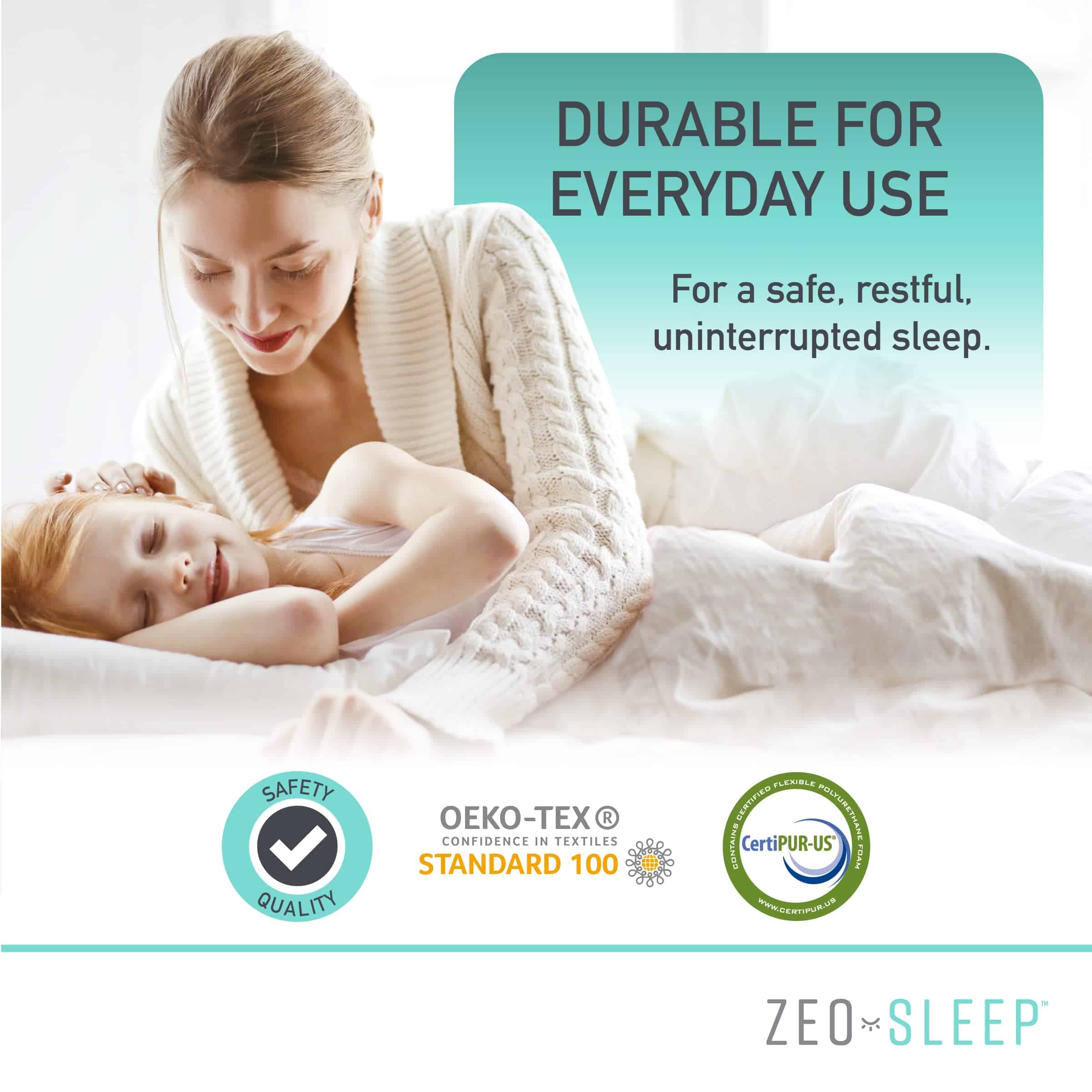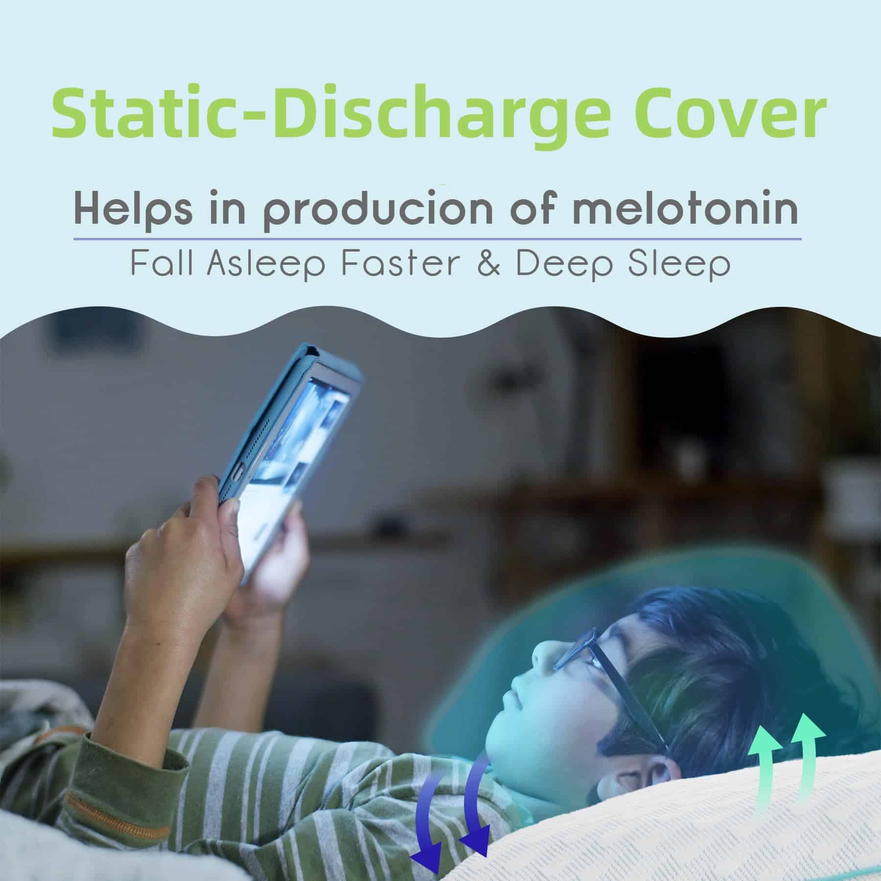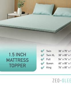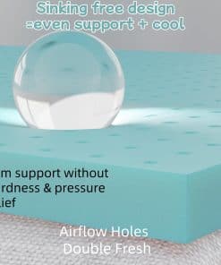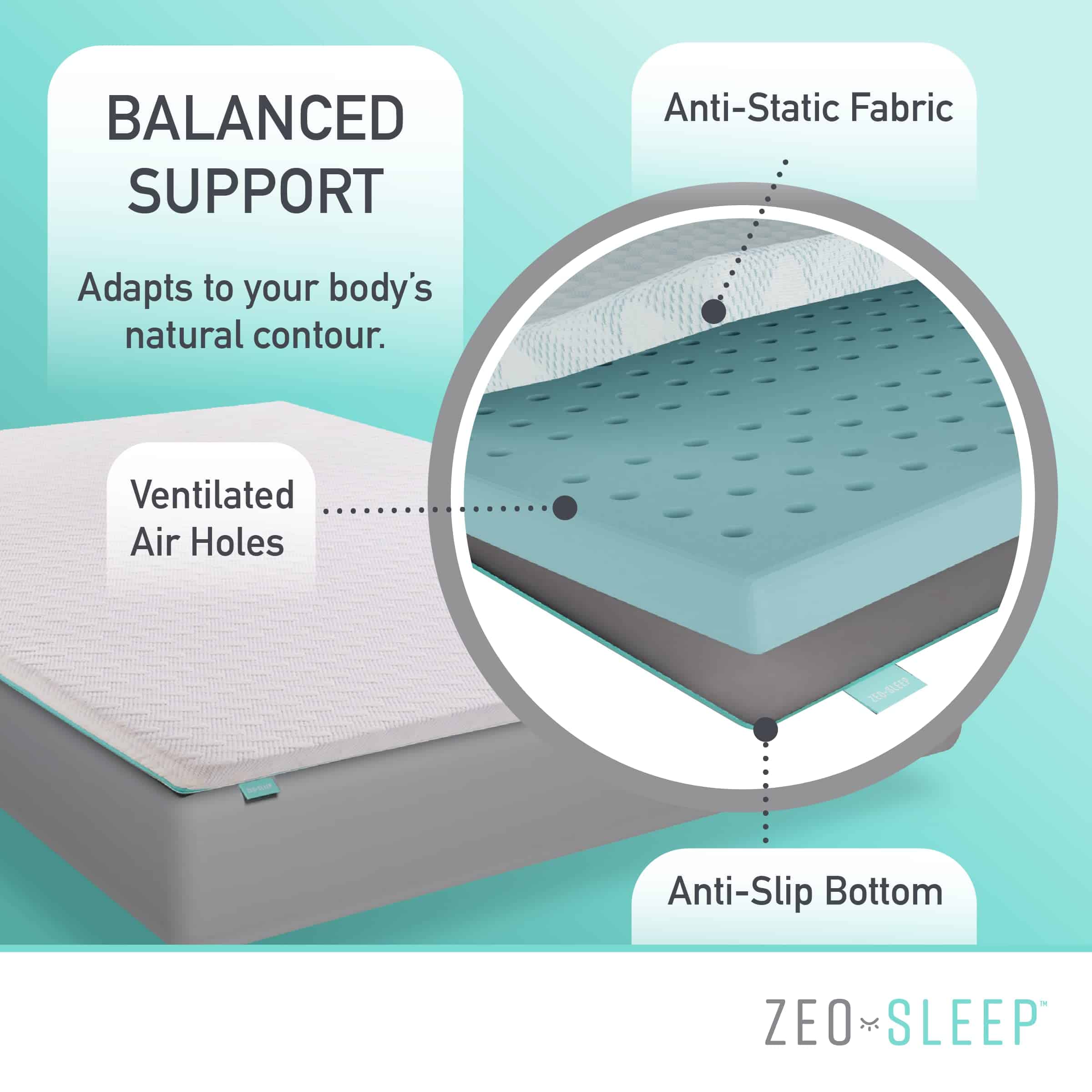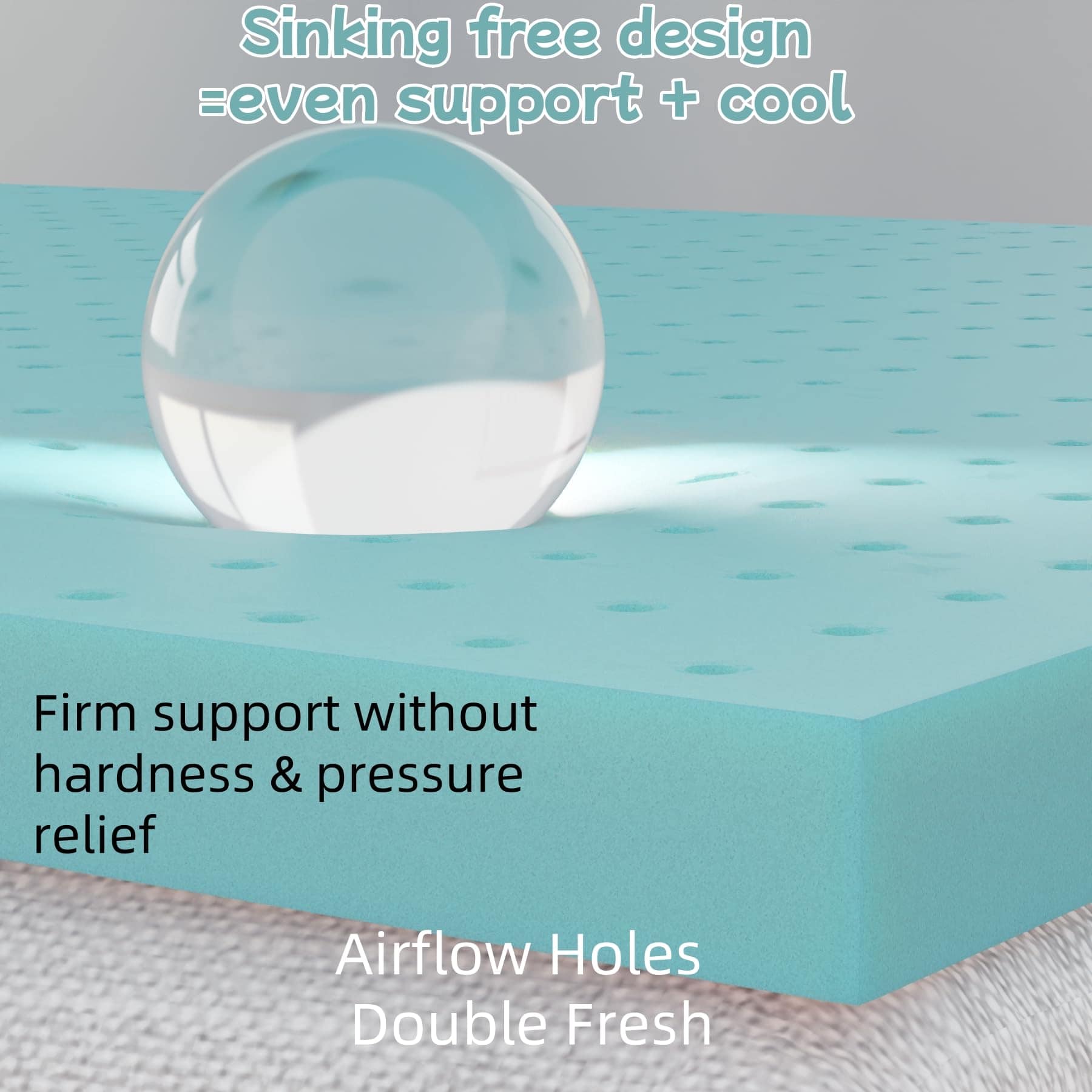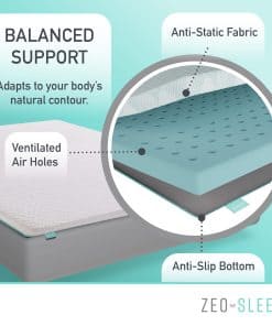 Dile adiós a la acumulación estática causada por tus dispositivos diarios y hola a un estado más relajado y equilibrado. Nuestra tela de liberación estática reduce los niveles de cortisol, promoviendo la producción de melatonina. Esto significa un sueño más rápido y profundo, mejorando tu calidad de sueño y tu salud general de forma natural. Mejora la calidad del sueño para ti y tu familia. Diseñado con espuma viscoelástica 2° GEL INFUSIONADA premium y ventilada, este topper de colchón proporciona cuatro veces más transpirabilidad que un colchón estándar. Disipa eficazmente el calor, asegurando una regulación óptima de la temperatura y el flujo de aire para una noche de sueño reparador. La suave y agradable a la piel cubierta garantiza tanto comodidad como una experiencia de sueño refrescante. Los puntos de silicona antideslizantes y las correas ajustables mantienen el topper en su lugar, mientras que la cubierta con cremallera permite quitarla fácilmente para limpiar. Tamaño del producto: Tamaño completo (54 x 74 x 1.5 pulgadas). Las certificaciones CertiPUR-US y OEKO-TEX garantizan un producto seguro y respetuoso con la piel libre de sustancias químicas dañinas, respaldado por una garantía de 5 años para un uso sin preocupaciones.