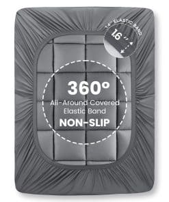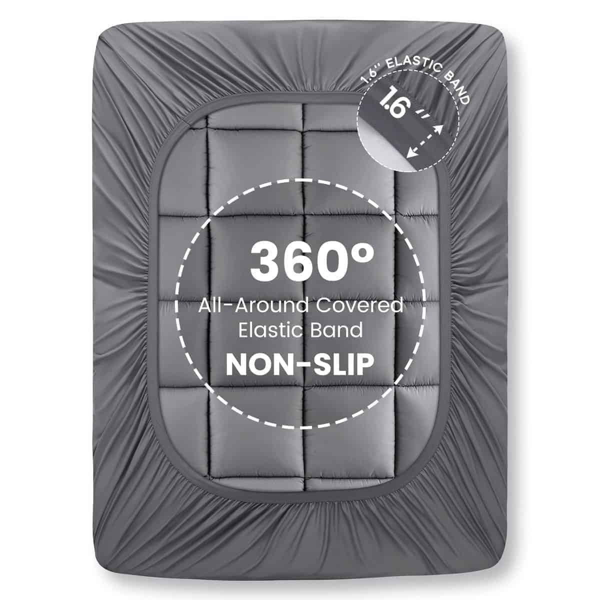 4. BOLSA PROFUNDA Y FÁCIL CUIDADO – Nuestra colchoneta está diseñada para adaptarse a la mayoría de los colchones. La bolsa de faldón de punto se extiende hasta 21 pulgadas y puede adaptarse a colchones de 8-15 pulgadas de profundidad. El ribete elástico de alta calidad de 1.6 pulgadas puede sostener de forma segura su envoltura en su lugar, evitando desplazamientos y ruidos mientras duerme. La colchoneta es lavable a máquina para facilitar su limpieza y mantenimiento. Se recomienda secarla en un ciclo suave y secarla de forma natural para que vuelva a estar esponjoso. Por favor, no use lejía, no planche ni limpie en seco la colchoneta.
