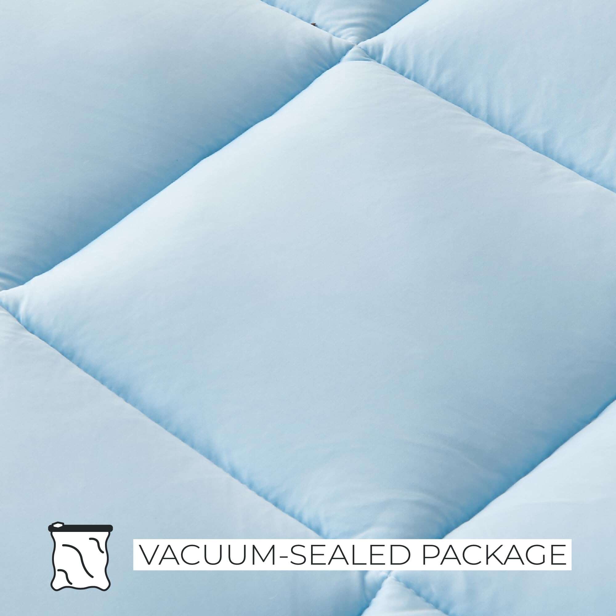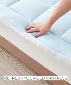 Colchoneta extra mullida para un confort superior de enfriamiento: Si tu colchón es demasiado firme y caliente, utiliza nuestra colchoneta de 2 pulgadas de enfriamiento. Hecha de fibra virgen 7D premium con relleno extra grueso y de apoyo para tus noches perfectas de sueño. Esta colchoneta ultra gruesa es un imprescindible para dormitorios de chicos y chicas. Con un diseño acolchado en caja, puedes estar seguro de que el relleno esponjoso se mantendrá en su lugar. Alta calidad, enfriamiento y silencioso: Lleno de un relleno alternativo de plumas ultra suave que tiene la sensación suave y mullida de auténticas plumas de ganso y pato, cubierto con una tela de nylon refrigerante. La construcción de alta calidad acolchada en caja de esta colchoneta hace que sea duradera y duradera, manteniendo el relleno en su lugar mientras duermes. Colchoneta con correas elásticas: Esta colchoneta de enfriamiento de relleno alternativo se estira para adaptarse a colchones profundos de hasta 18″. Las correas elásticas en cada esquina garantizan que esta colchoneta se mantenga en su lugar mientras duermes. Esta colchoneta tiene un relleno de fibra alternativa al plumón que otros en el mercado y cuenta con una capa superior refrigerante. Está acolchada en caja para evitar que el relleno se desplace durante el sueño y el lavado. Fácil de cuidar: Esta colchoneta para colchón completo (54 pulgadas de ancho x 75 pulgadas de largo) es lavable a máquina, duradera y duradera. Simplemente lávala y luego sécala a baja temperatura. Retírala rápidamente y agítala para tener una colchoneta renovada y como nueva. Nota especial: Nuestras colchonetas llegan a tu puerta en un paquete sellado al vacío. Evita cortar directamente el producto al desempaquetarlo. Para maximizar tu nueva colchoneta, primero agítala a mano desde diferentes direcciones. Luego sécala a baja temperatura durante 20 minutos. Finaliza dándole golpecitos suaves a la colchoneta.
