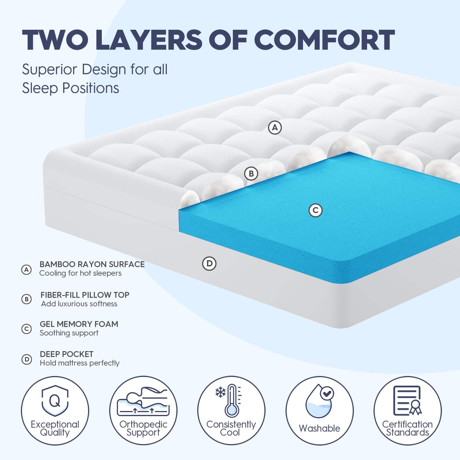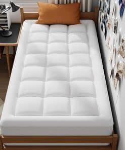 La colchoneta ELEMUSE Dual Layer 3 Inch Memory Foam Mattress Topper Twin es la solución perfecta para mejorar la comodidad y soporte de tu colchón actual. Con su diseño de capa dual 2 en 1, esta colchoneta cuenta con una capa inferior de 2 pulgadas de espuma de memoria con gel de enfriamiento y una capa adicional de 1 pulgada de almohadilla pillowtop alternativa de plumón, proporcionando una combinación de comodidad y soporte suave. El material de la cubierta de bambú proporciona una sensación suave y transpirable, perfecta para aquellos que duermen calientes. Además, la cubierta pillowtop es removible y lavable, lo que facilita la limpieza y el mantenimiento de tu colchoneta. Disfruta de un sueño de calidad todas las noches con la colchoneta ELEMUSE Dual Layer 3 Inch Memory Foam Mattress Topper Twin.