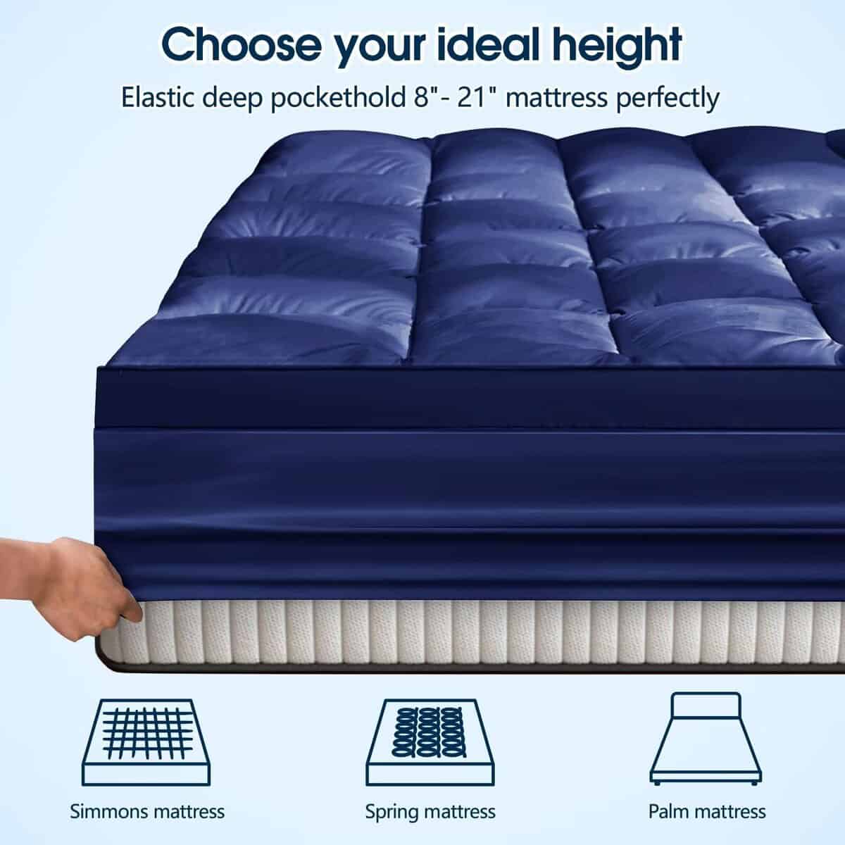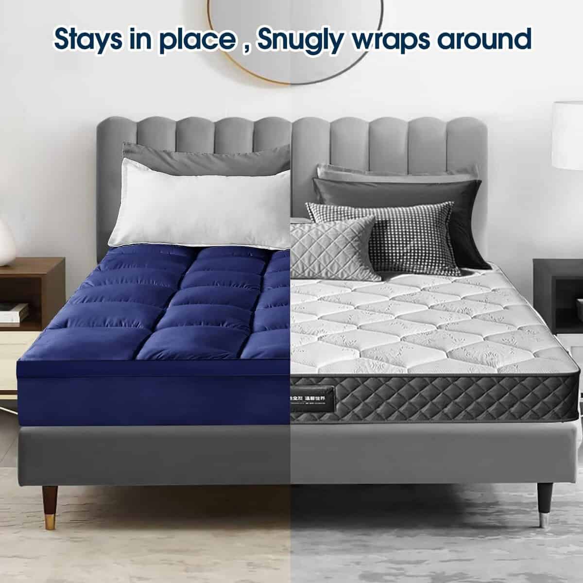4. Ajuste perfecto y seguro: Nuestra cubierta de colchón con acolchado de almohada cuenta con bordes elásticos diseñados para adaptarse a varios grosores de colchón, desde delgados hasta gruesos, permaneciendo ajustados en su lugar durante toda la noche. Esto significa que permanecerá envuelto de forma segura alrededor de su colchón de espuma viscoelástica, brindando comodidad y protección continua para un sueño tranquilo.
