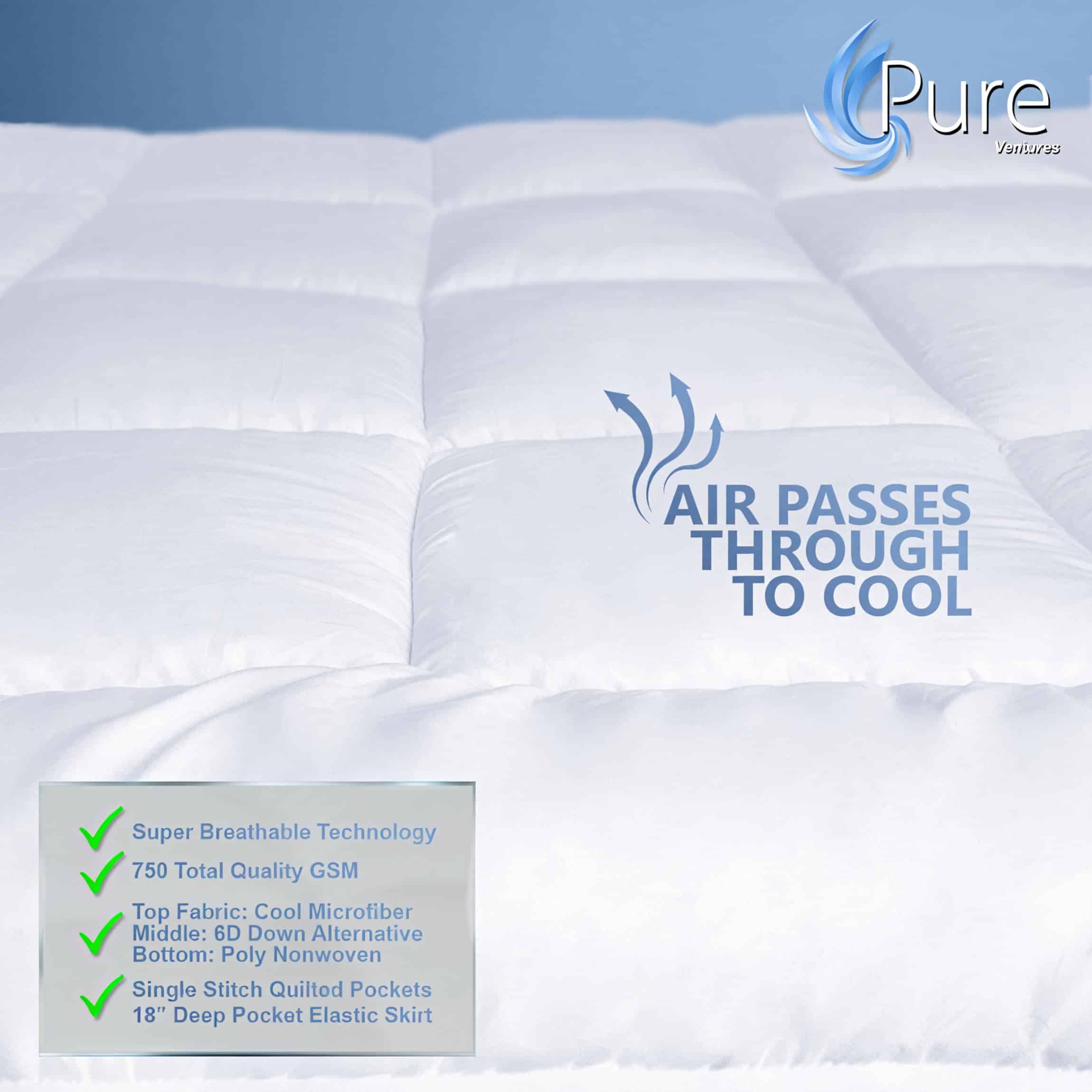 2. Material superior: Hecho de microfibra de alta calidad súper suave, fresca y transpirable, esta cubierta de cama esponjosa proporciona una capa adicional de suavidad para un sueño mejorado. Su relleno premium de alternativa al plumón mejora el flujo de aire y distribuye el calor haciéndolo altamente cómodo y duradero.
