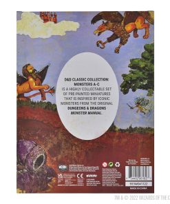 Colección Clásica de D&D: Monstruos A-C. Los monstruos de Dungeons and Dragons están en constante cambio y evolución, al igual que el juego en sí. Verlo crecer y adoptar diferentes formas es una cosa fantástica, sin duda. Sin embargo, a veces solo quieres un poco de la vieja escuela. ¡Esta Colección Clásica de D&D: Monstruos A-C es justo eso! ¡Presenta 8 de las criaturas más icónicas y memorables de Dungeons and Dragons renderizadas en su estilo original! Basándose en el Manual de Monstruos original, estas nuevas creaciones de WizKids muestran algunos de nuestros favoritos tal como fueron imaginados originalmente. ¡Colecciona este conjunto de 8 y restaura algo de esa pátina en tu campaña! Incluye: Ankheg, Basilisk, Beholder, Bulette, Carrion Crawler, Chimera, Cockatrice, Couatl.