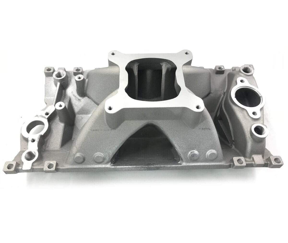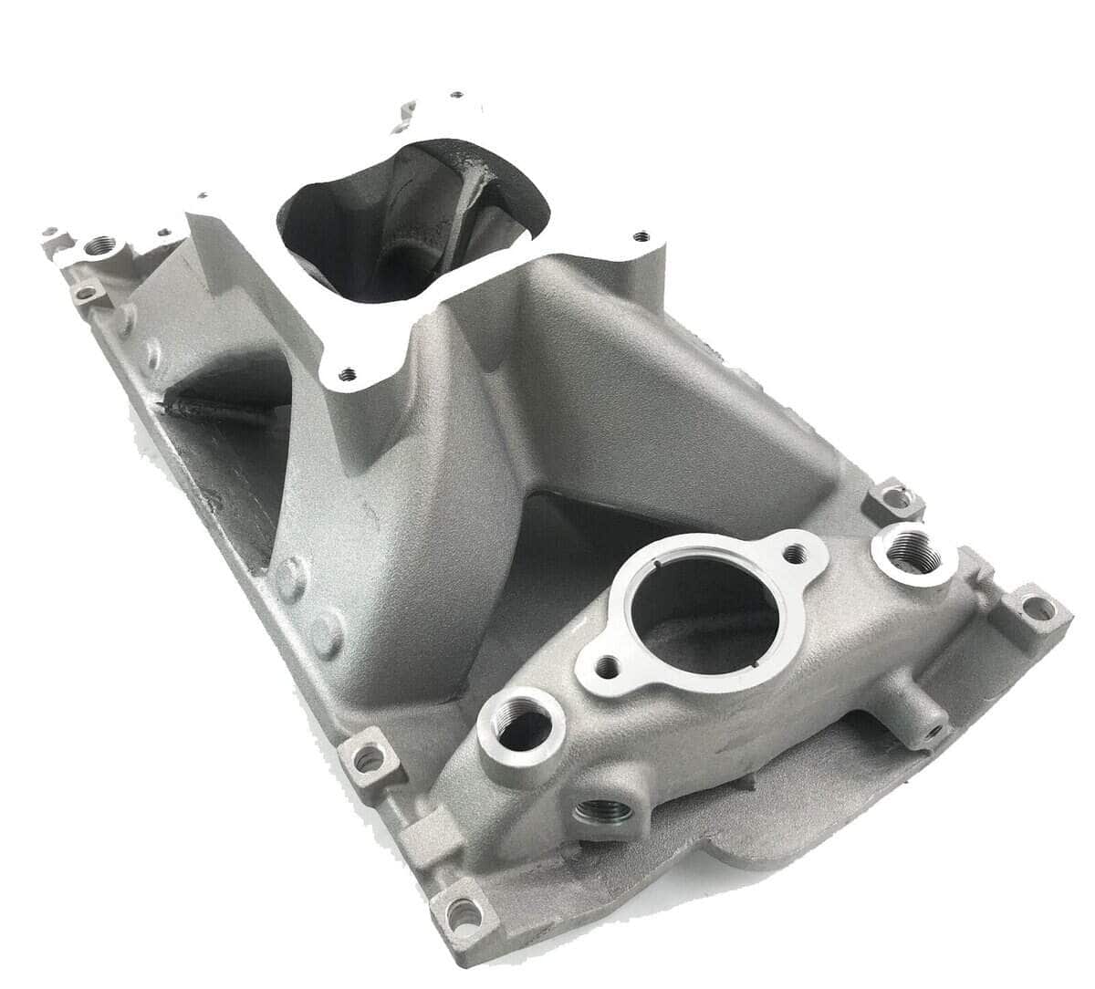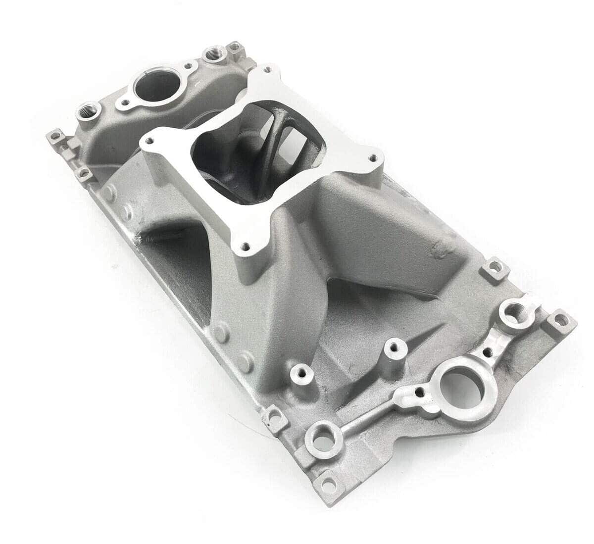 Nuevo artículo, nunca usado ni instalado. Dimensiones del puerto de admisión 2.06″ x 1.18″. Altura del colector 6.06″. Bosses fundidos en los conductos de admisión, pueden ser perforados y roscados para usar con nitrógeno. Patrón de pernos de carburador de boca cuadrada para el carburador estilo Holley 4150/4160. Posición ideal del puerto: permite el mecanizado personalizado para obtener la máxima potencia. Provisión doble de sujeción del distribuidor para una protección adicional contra la rotación del distribuidor. Cuatro salidas de agua en las esquinas. Acepta tapón de agua de modelos más recientes, aire acondicionado, soportes de alternador e HEI. Se recomienda encarecidamente la instalación profesional. No se incluyen instrucciones. Paquete que incluye: 1 X Colector de Admisión SBC como se muestra en la imagen de arriba.