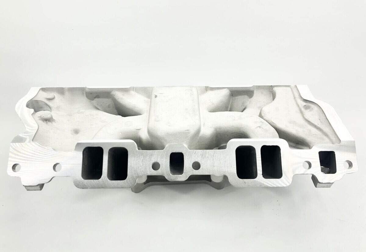 Características: Uso: Calle/Alto Rendimiento. Posición: N/A. Motor Make/Size: Chevy Small Block (265-400). Emisión: Sin EGR. Tipo de Culata: Estándar. Rango de RPM: Marcha en ralentí-5500. EGR: Sin EGR. Estilo de admisión: Dual plane. Cantidad de carburadores: Uno. Altura del colector de admisión (en.): 4.8. Acabado: Natural. Material: Aluminio. Contenido del paquete: 1 Colector de admisión SBC de fundición.