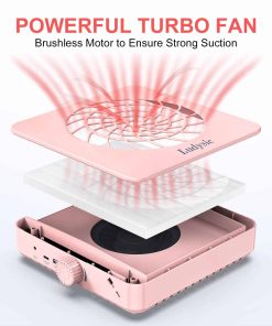 Colector de Polvo para Uñas con Filtro Reutilizable, Extractor de Polvo de Aspiradora para Uñas de Acrílico con Ventilador Potente, Bajo Ruido, para Salón de Uñas o Uso en Casa (Rosado) – El colector de polvo para uñas de Ludysic efectivamente adsorbe y recoge el polvo de las uñas y las cenizas voladoras desde 360 grados de forma eficiente. Tú y tus clientes pueden disfrutar de un ambiente libre de polvo mientras liman o pulen las uñas. Esta máquina colectora de polvo para uñas cuenta con un motor de alta calidad que funciona en bajo ruido y de forma suave. Tiene un botón ajustable, por lo que puedes elegir la intensidad del viento ajustando el botón y así absorber fácilmente todo tipo de polvo y confeti para mantener limpia la superficie de trabajo en todo momento. Los grandes orificios de ventilación en la parte trasera con función de disipación de calor persistente aseguran que el ventilador colector de polvo para uñas no se caliente incluso durante trabajos prolongados. Este colector de polvo para uñas cuenta con un filtro reutilizable que puede absorber todo tipo de polvo sin que se escape ceniza, buena capacidad de disipación de calor y bajo ruido. Hay una malla fina en la parte superior del ventilador que puede evitar que el polvo obstruya el ventilador. Así que la máquina puede funcionar de forma silenciosa y con bajo ruido, incluso los principiantes pueden usarla fácilmente. Hemos pasado la certificación CE/ROHS/FCC, lo que lo hace más seguro y duradero. El colector de polvo para uñas tiene una garantía de 1 año. Si tienes algún problema, no dudes en contactarnos, te responderemos en un plazo de 24 horas en días laborables.