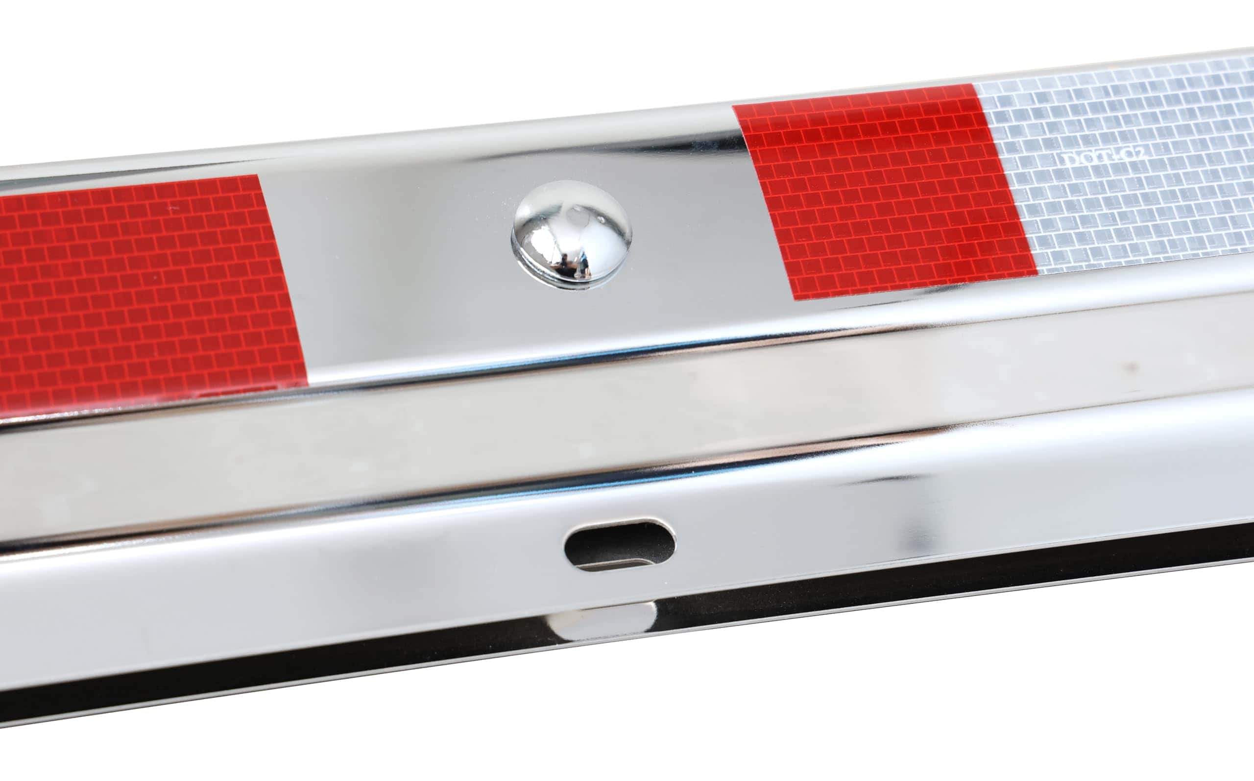 Colgador recto de guardabarros con cinta reflectante,1-1/8″ en espaciado de perno de montaje, longitud de 30″. Versión cromada y versión negra (cromada). Este colgador de guardabarros recto es una excelente adición a tu vehículo, con un resorte mejorado de 13 pulgadas en el interior que proporciona un rendimiento de reducción de vibraciones óptimo. Fabricado con piezas de calidad y cinta reflectante, es duradero y confiable en cualquier clima. Viene en dos versiones: cromada y negra. Cada paquete incluye 2 piezas (1 par), listas para ser instaladas en tu vehículo.