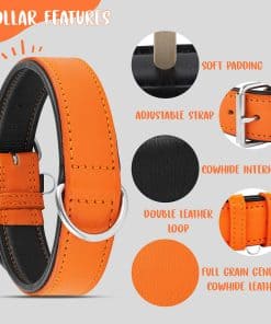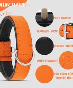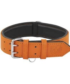 Este collar de perro de cuero genuino de primera calidad presenta un diseño clásico y práctico. Viene con un anillo de etiqueta de identificación para que pueda adjuntar su placa de identificación personalizada. El acolchado suave en el interior del collar K9 proporciona comodidad a su perro, previniendo la irritación de la piel o daños en el pelo, haciendo que su perro se sienta cómodo durante largos períodos de tiempo. La hebilla y el anillo en D de acero inoxidable de grado quirúrgico hacen que sea resistente y duradero. El anillo en D es lo suficientemente conveniente para agregar un accesorio de correa para actividades al aire libre.