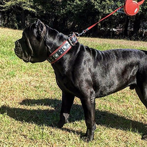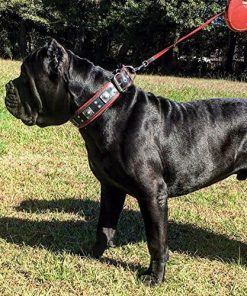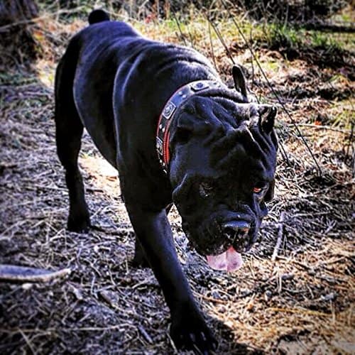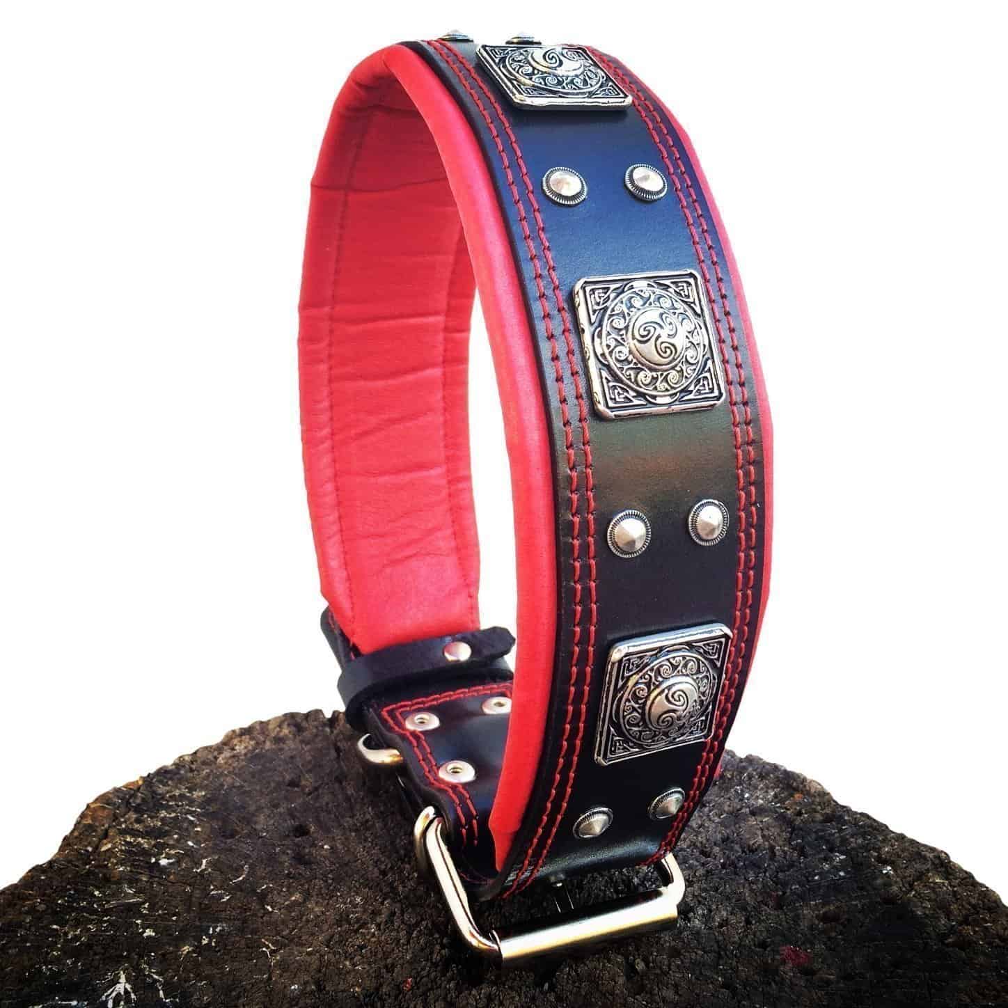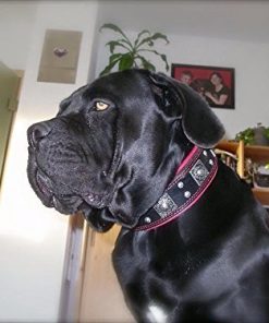 BESTIA CUSTOM DOG GEAR presenta con orgullo: El collar Eros BLACK parte de nuestra colección exclusiva presenta una combinación de dos modelos de remaches en color plateado antiguo. La capa base de este collar es de cuero de correa de búfalo alemán de 4 mm de grosor de la más alta calidad. Es muy resistente y duradero. La capa interior es nuestro acolchado suave patentado de cuero y espuma ortopédica. También es 100% cuero Nappa genuino. Este collar tiene un ancho total de 2.5 pulgadas, incluido el acolchado suave. La hebilla y el anillo D miden 2 pulgadas. Todas las piezas metálicas están niqueladas, fabricadas con alambre de acero, especialmente para este propósito. Tallas disponibles: (M – para un cuello de 16.7 a 20.6 pulgadas) (L – para un cuello de 19.7 a 23.6 pulgadas) (XL – para un cuello de 22.6 a 26.6 pulgadas) (XXL – para un cuello de 25.6 a 29.6 pulgadas) ¡POR FAVOR, MIDA EL CUELLO DE SU PERRO ANTES DE HACER EL PEDIDO! Este collar se ajusta perfectamente a perros de razas grandes y gigantes como el Cane Corso, Bulldog Americano, Rottweiler, Dogo Argentino, Presa Canario, Labrador, Mastín, Bullmastiff y muchos más. Cuero genuino acolchado suave hecho a mano de calidad fabricado en Europa diseño único