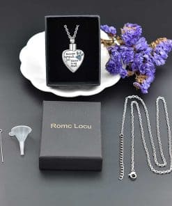 El collar de cremación de cenizas para mascotas está fabricado con acero inoxidable 316L de meticulosa mano de obra, grabado según tu solicitud. El tornillo roscado seguro mantiene los contenidos seguros incluso con el uso diario. Diseñado meticulosamente y de calidad, te permitirá atesorar los recuerdos de tu ser querido para siempre. Ideal para cenizas, pelo o flores secas, es una forma especial de honrar al fallecido. Diseñamos estos sólidos collares conmemorativos para brindarte consuelo y coraje. Lleva los recuerdos de tu mejor amor contigo sin importar a dónde vayas. Incluye: 1 caja de regalo, 1 colgante Urn, 1 cadena de acero inoxidable, 1 juego de embudo de llenado. Cómo usar: Desenrosca los tornillos en el colgante. Coloca el embudo en la abertura del colgante Urn. Vierte las cenizas en el embudo, el pasador de acero inoxidable puede ayudar a guiar los restos dentro del colgante. Llena el colgante no más del 90% lleno. Coloca una pequeña gota de super pegamento en los hilos antes de sellar. Características del producto: Collar colgante de urna de cremación de acero inoxidable de alta calidad y excelente mano de obra. Anti-transpiración, resistente al agua, duradero, que no se decolora. No contiene níquel. No daña nuestra salud en absoluto. Los eslabones sólidos y robustos de la cadena garantizan su solidez y tampoco tirarán de tu cabello. Servicio postventa: Tu satisfacción es la mayor fuerza impulsora para que sigamos avanzando. Si no estás satisfecho con el producto cuando lo recibiste, contáctanos. Cambiaremos el producto o te reembolsaremos por completo. ¡Prometemos garantía de devolución del dinero de 90 días en todos nuestros productos!
