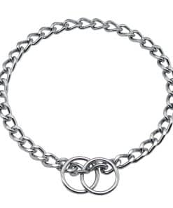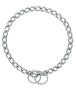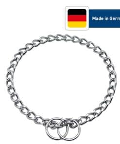 Tamaño: Este collar de cadena de acero cromado Herm. Sprenger está diseñado para perros con una circunferencia de cuello de no más de 21 pulgadas (53 cm). La longitud total del collar es de 24 pulgadas (60 cm) con un grosor de alambre de 3 mm. Diseño: Collar de cadena de adiestramiento de estilo de estrangulamiento para perros con eslabones cortos pulidos planos y fabricado en acero cromado altamente brillante. Este collar es adecuado para perros con pelo corto. Importante: Es especialmente importante elegir el tamaño correcto. Considere el tamaño de la cabeza de su perro al seleccionar el collar: el collar se desliza sobre la cabeza y las orejas del perro y No es ajustable. Funcionalidad: Los eslabones cortos y planos de la cadena se deslizan fácilmente a través de las anillas creando un bucle y se deslizan fácilmente sobre la cabeza y las orejas del perro. Dependiendo de la conexión con la correa, la cadena de estrangulamiento actúa como un collar de adiestramiento, collar de corrección de comportamiento o un collar de perro ordinario adecuado para actividades diarias. Calidad Profesional: Fabricado en Alemania con precisión, fiabilidad y calidad alemana por el principal fabricante mundial de collares de adiestramiento para perros.