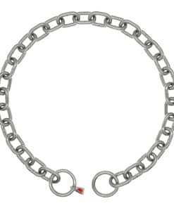 Tamaño: Este collar de ahorque Herm. Sprenger de acero inoxidable está diseñado para perros grandes y fuertes con una circunferencia de cuello de Hasta 17 pulgadas (43 cm). La longitud total del collar es de 20 pulgadas (52 cm) con un calibre de alambre de 5 mm. Importante: Es especialmente importante elegir el tamaño correcto. Por favor, considere también el tamaño de la cabeza de su perro al seleccionar el tamaño del collar, ya que el collar se desliza sobre la cabeza y las orejas del perro. Este collar No es ajustable. Funcionalidad y Diseño: El collar de ahorque de acero inoxidable pulido tiene eslabones medianos adecuados para perros con pelaje largo y fino. El alambre extra grueso y ampliamente espaciado evitará que el pelo se enrede y se retuerza dentro del collar. Este collar duradero y resistente es fuerte y duradero y es apropiado para perros grandes con cuellos fuertes. Los eslabones de la cadena pasan sin esfuerzo a través de los anillos O creando un bucle, que se puede deslizar fácilmente sobre la cabeza del perro. Cuando la correa se conecta al anillo O vivo, la cadena de ahorque actúa como un collar de adiestramiento de corrección de comportamiento. Conectar la correa al anillo O muerto transforma el collar de ahorque en un accesorio o un collar de perro común adecuado para actividades diarias. Calidad Profesional: Fabricado en Alemania con ingeniería precisa alemana, fiabilidad y calidad por el principal fabricante mundial de collares de adiestramiento de alta calidad; 2 anillos O están sellados con el sello de calidad de Sprenger HS-Alemania.