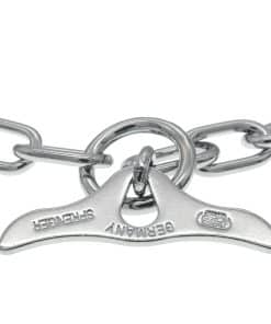 Tamaño: Este collar de adiestramiento Herm. Sprenger para ahorro de pelaje de acero cromado está diseñado para perros con una circunferencia de cuello de hasta 24 pulgadas (60 cm). La longitud total del collar es de 26 pulgadas (65 cm). El calibre del alambre es de 3.4 mm. Importante: Es especialmente importante elegir el tamaño correcto. El collar no es ajustable. Funcionalidad y diseño: Cadena de estrangulamiento de acero cromado de alto brillo con eslabones medianos y es adecuada para perros con pelaje largo y fino. El alambre espaciado ampliamente evitará que el pelaje se enrede y se enrosque dentro del collar. Cree un collar con lazo pasando la palanca a través del anillo en O en el extremo opuesto del collar. Esta característica elimina la necesidad de pasar el collar por la cabeza y las orejas del perro y está diseñada para abrocharse de forma segura alrededor del cuello del perro. Conectar la correa a la palanca le permite adiestrar a su perro y corregir su comportamiento al caminar. A medida que el perro jala la correa, el lazo de adiestramiento se ajustará, enviando la señal a su perro para que ajuste el paso. Colocar la correa en el anillo en O muerto transforma el estrangulador en un collar normal para perros. Dejar el collar sin atar a la correa sirve como un accesorio decorativo. Calidad profesional: Fabricado en Alemania con ingeniería alemana precisa, confiabilidad y calidad por el fabricante líder mundial de collares de adiestramiento de alta calidad; El anillo en O y la palanca están marcados con el sello de calidad HS-Germany de Sprenger.