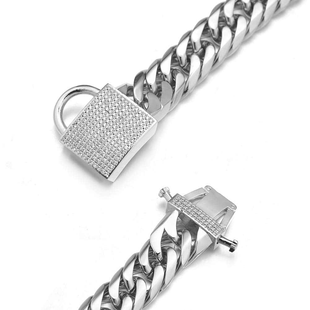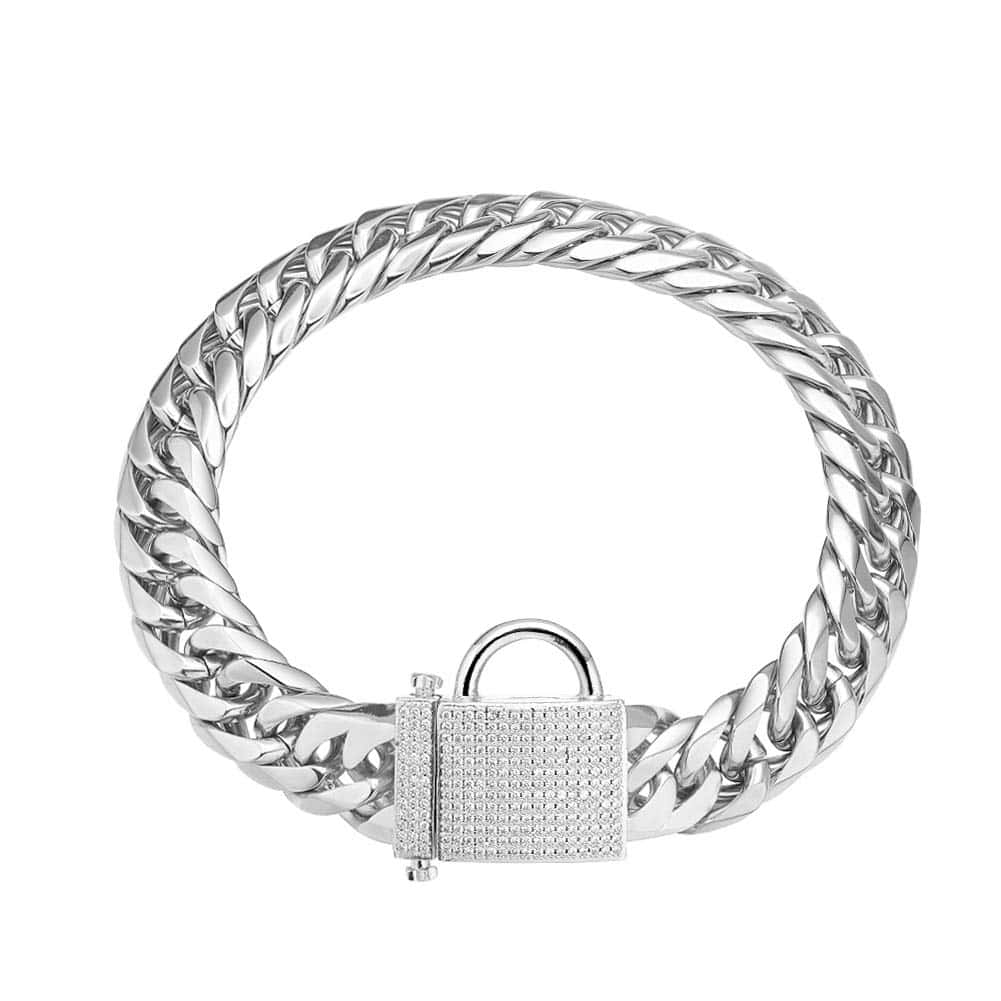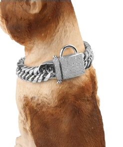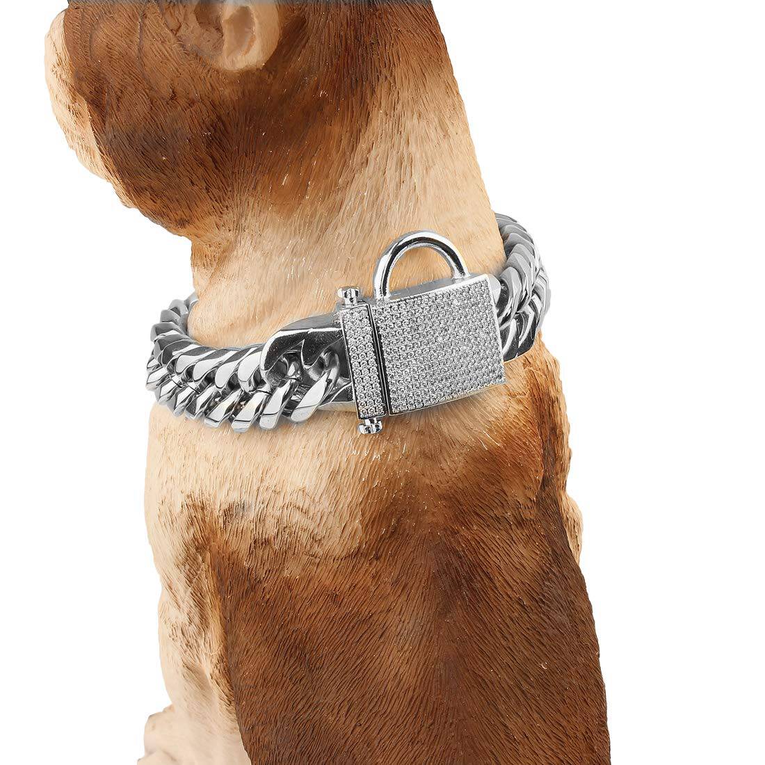 Este collar de perro súper fuerte y súper elegante hará que tu pitbull, bulldog, mastín, rottweiler, beagle, etc., sea el perro más genial. Este se convertirá en el collar favorito y más adecuado de tu perro. Los eslabones de acero inoxidable fuertes están hechos extra anchos para la máxima comodidad. La cadena es suave y pulida para evitar cualquier desgaste en el pelaje de tu perro, y el acero inoxidable 316L de primera calidad y libre de manchas es 100% libre de irritaciones. Cada collar de perro de lujo llega en una bolsa de terciopelo negro lujosa para su almacenamiento seguro o para regalar como regalo, cuidadosamente envuelto con película plástica para protegerlo de arañazos durante el envío.