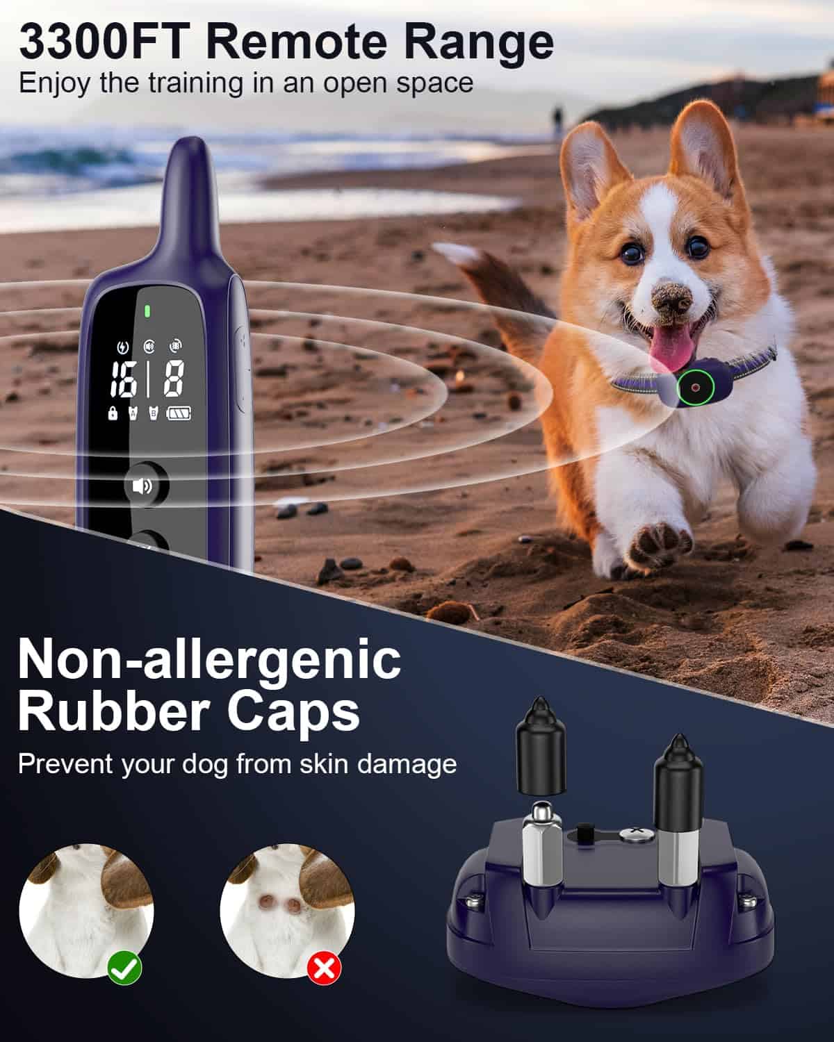 2. Sistema de Bloqueo Seguro y Control Remoto de 3300 pies El sistema de bloqueo de seguridad ayuda a prevenir cualquier activación no intencionada mientras manejas el control remoto. Su impresionante rango de hasta 3300 pies permite un entrenamiento fácil, ya sea dentro de tu casa o al aire libre.