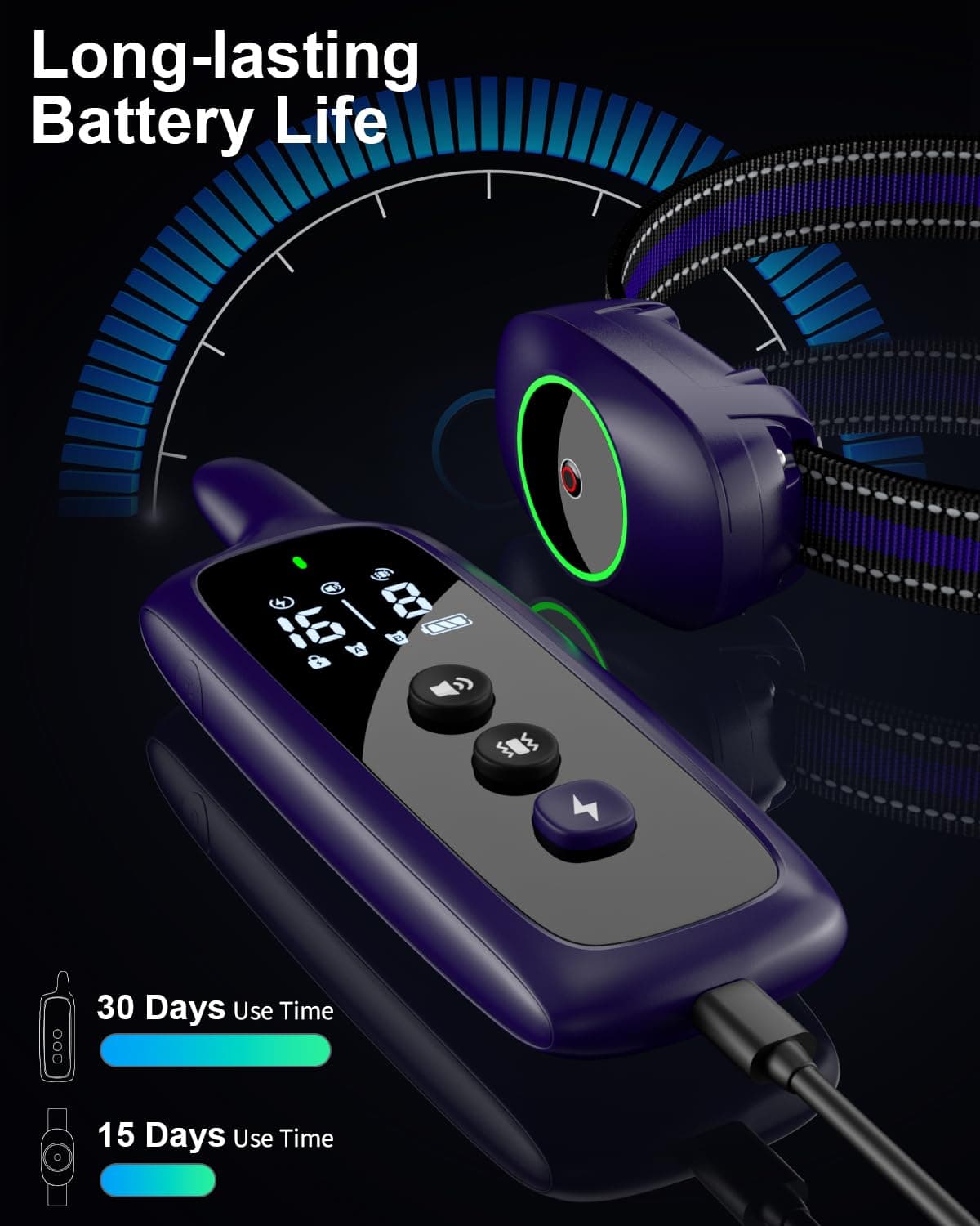 5. Carga Rápida e Increíble Duración de la Batería Completamente cargado en 2 horas utilizando un adaptador de teléfono o toma USB, este collar para perros cuenta con hasta 35 días de tiempo en espera, y el control remoto puede durar hasta 45 días. Nota: Por favor, evita cargar con un adaptador que sobrepase una salida de energía de 5V1A.