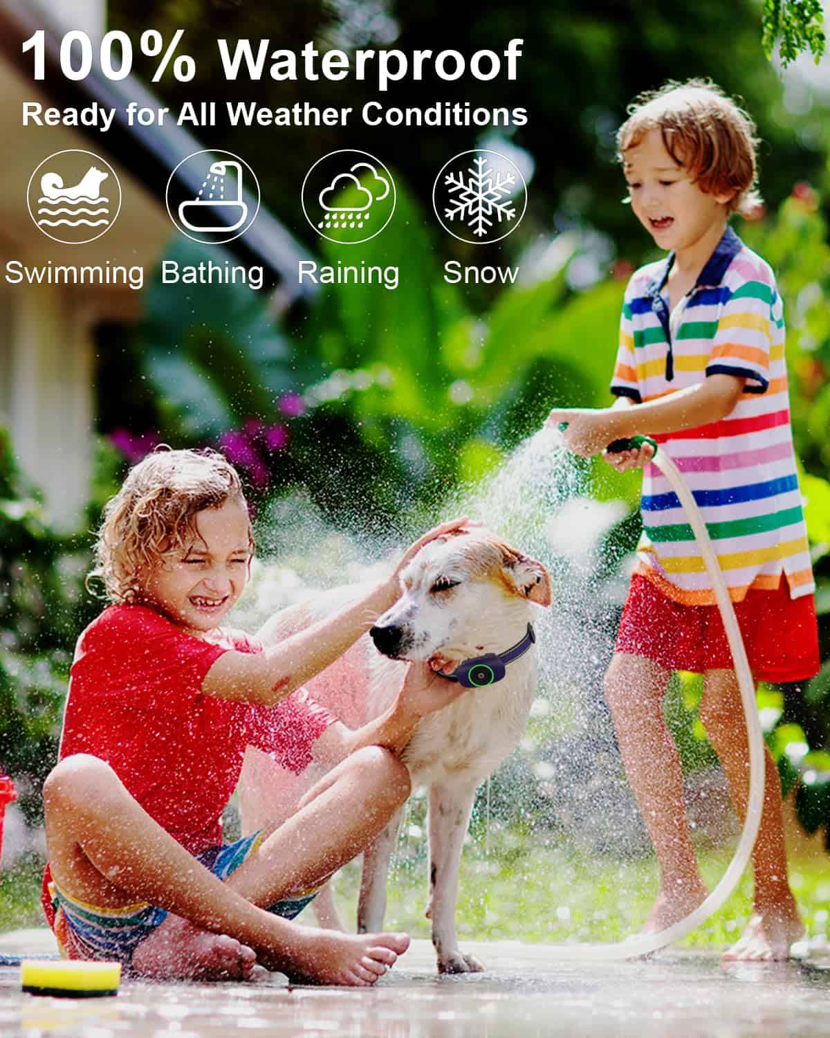 3. Receptor IPX7 y Collar Cómodo El collar impermeable IPX7 es ideal para cualquier aventura relacionada con el agua o lluvias repentinas. Su longitud ajustable de correa atiende a perros que pesen más de 10 libras con tamaños de cuello que van desde 6 a 27 pulgadas.