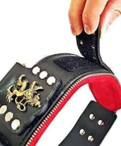 BESTIA CUSTOM DOG GEAR presenta: El collar ‘General’. Diseño y concepción único con ‘hombreras de velcro’ para un estilo diferente cada día. La capa base es de cuero de cinturón de búfalo de 4 mm de espesor. Tiene un cojín suave de piel de cerdo invertida en el interior, forrado con espuma suave de 6 mm para máxima comodidad. Hebillas para tallas de M a XL son de 35 cm (1.4 pulgadas) de ancho, para la talla XXL de 5 cm (2 pulgadas). Todas las tallas tienen un anillo en D de 4 cm(1.6 pulgadas) de ancho para mayor resistencia. Tabla de tallas: Talla M ajusta un cuello de 16.7 a 19.7 pulgadas (42,5 a 50 cm) Talla L ajusta un cuello de 19.7 a 22.6 pulgadas (50 a 57,5 cm) Talla XL ajusta un cuello de 22.6 a 25.6 pulgadas (57,5 a 65 cm) Talla XXL ajusta un cuello de 25.6 a 29.5 pulgadas (65 a 75 cm) ¡MIDA EL CUELLO DE SU PERRO ANTES DE REALIZAR EL PEDIDO! Este collar se ajusta perfectamente a todas las razas de perros grandes a gigantes, como: Rottweiler, Cane Corso, American Bulldog, Amstaff, Pitbull, Bully, Doberman, Presa Canario, Bullmastiff, Mastiff, Gran Danés, Dogo Argentino y muchos más. Cuero genuino 100% suave acolchado de calidad artesanal hecho en Europa diseño único