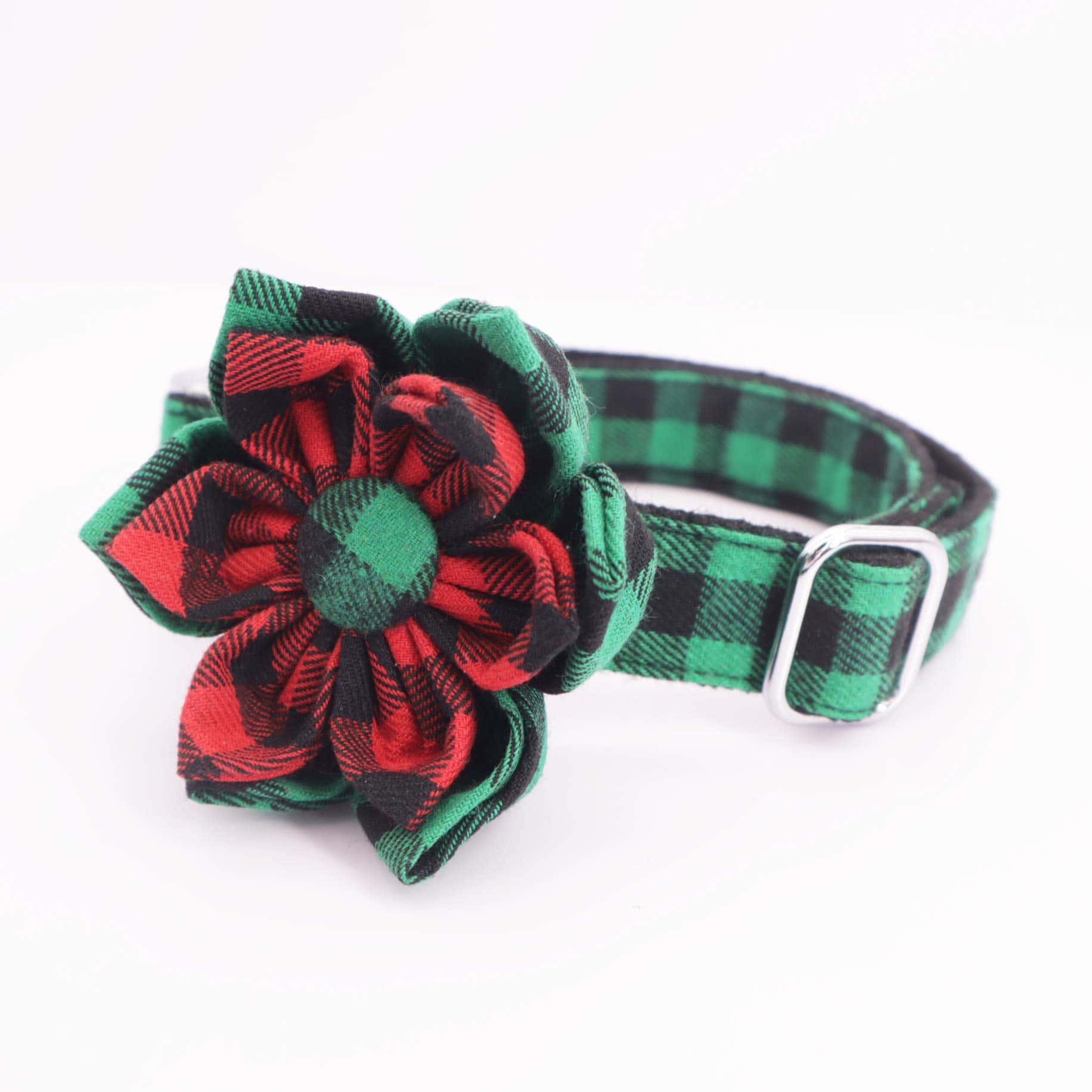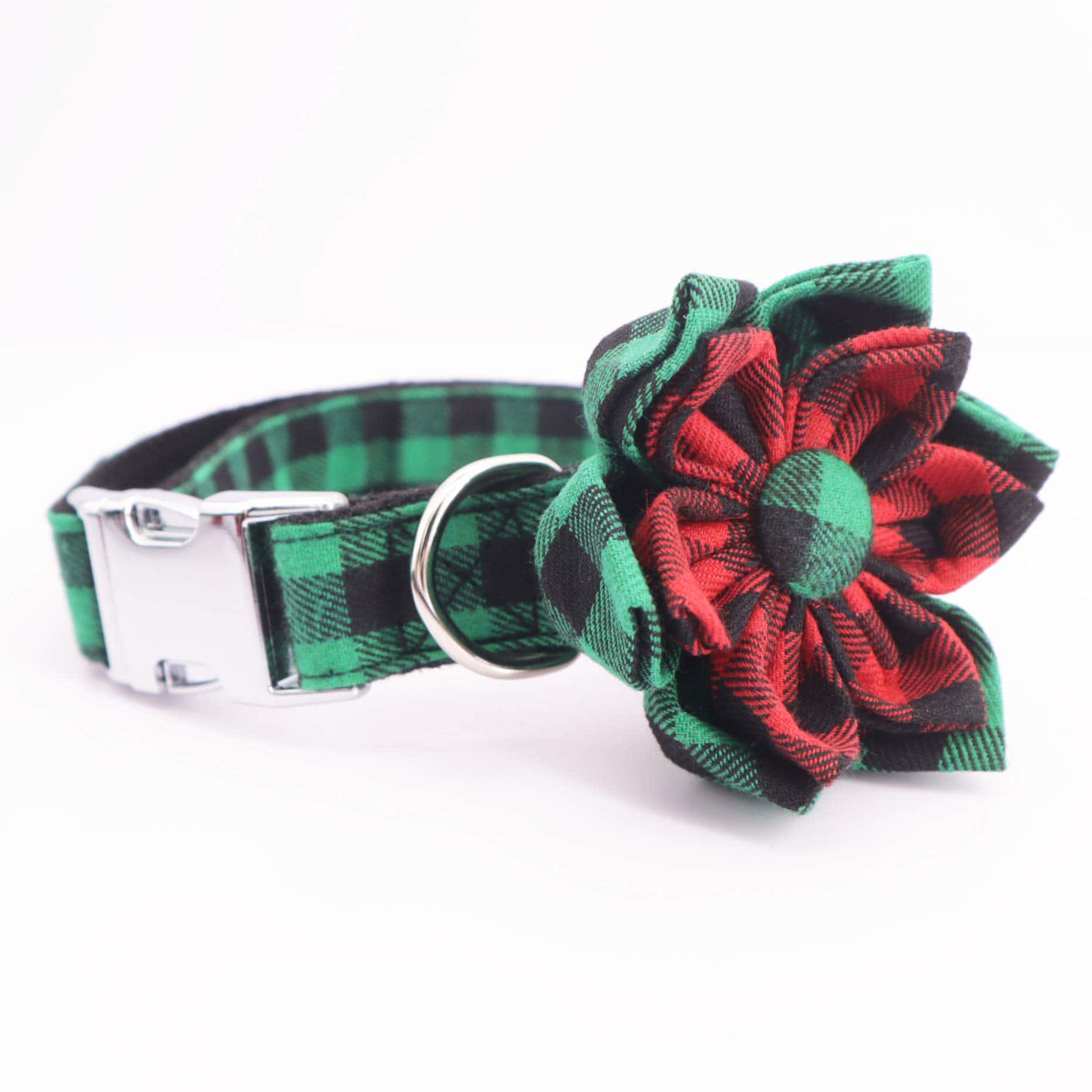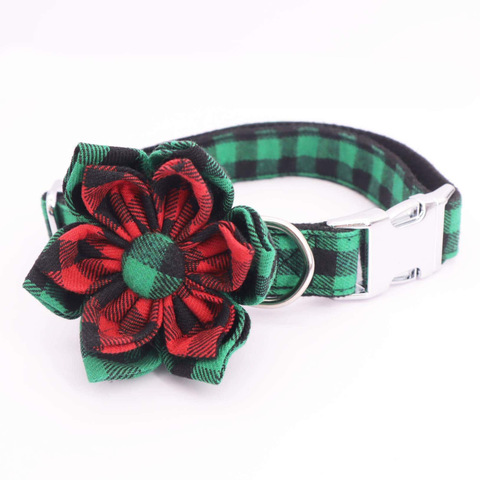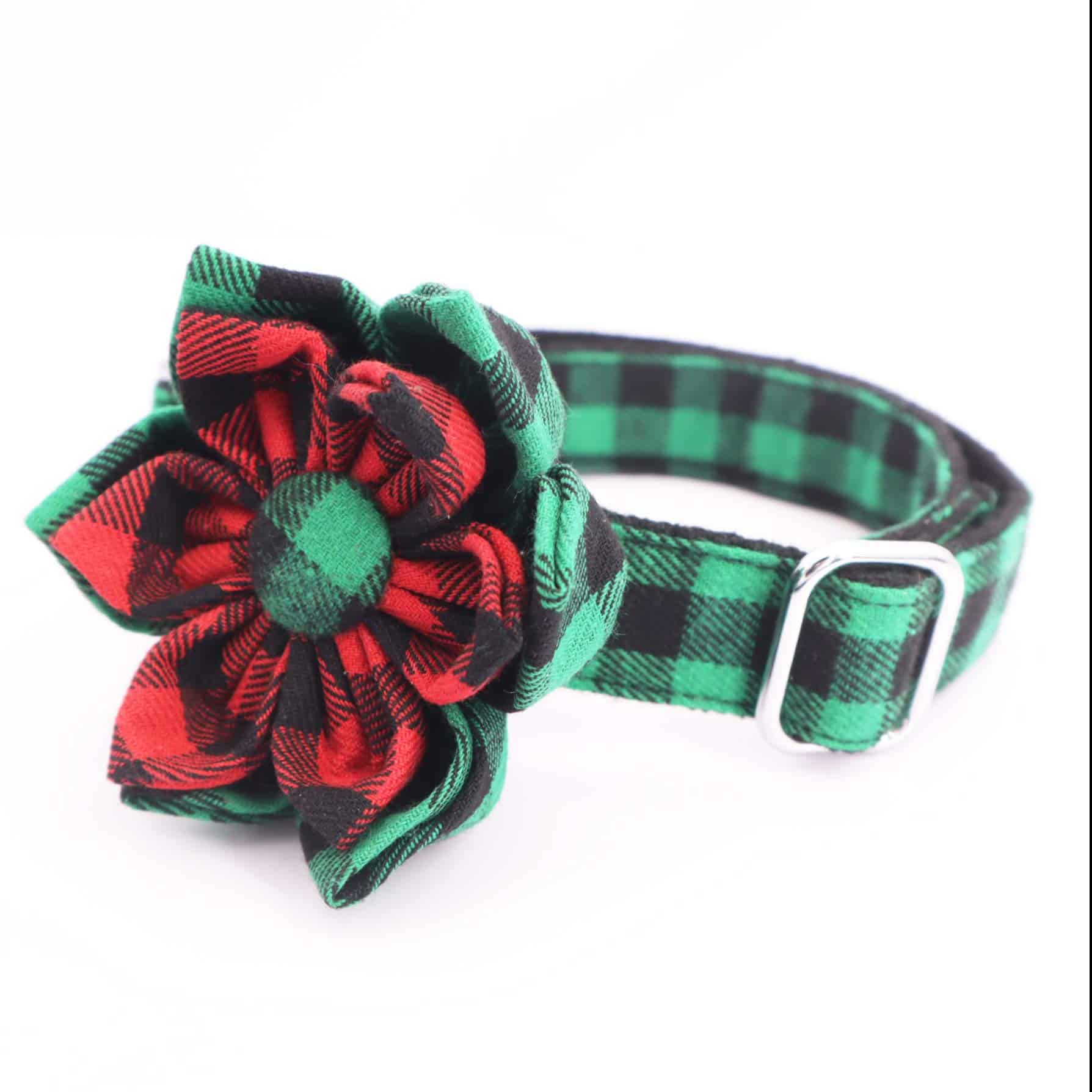 Collar de Perro con Flor Navideña Verde, Collar de Flor